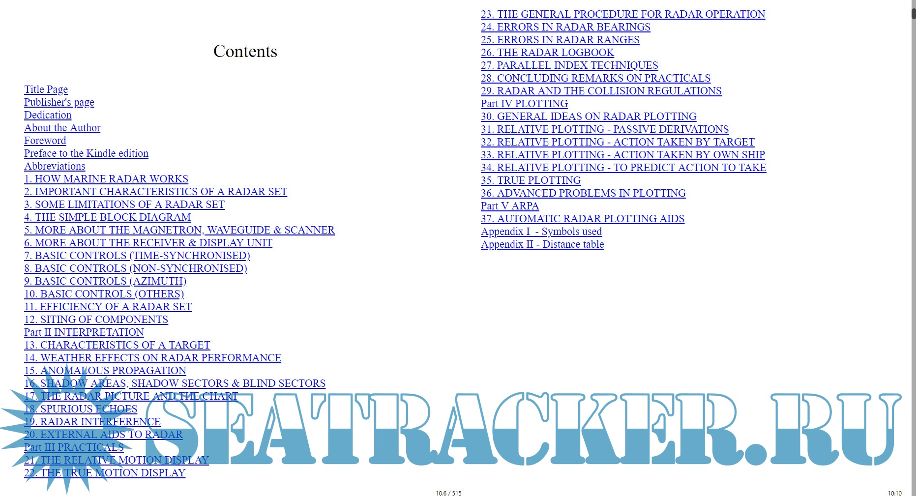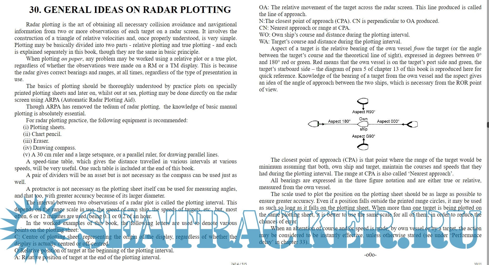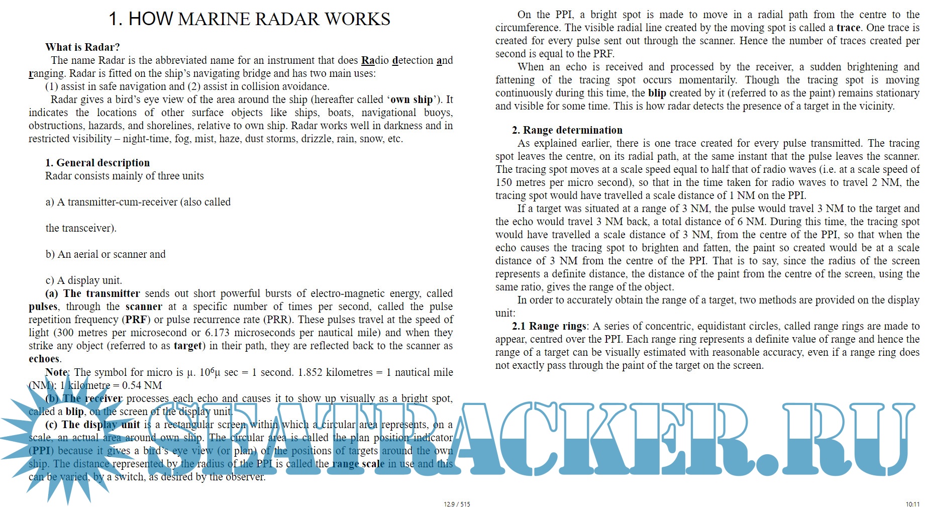 Year: 2019 Language: english Author: Capt. Harry Subramaniam Genre: Textbook Publisher: Vijaya Publication Edition: 5th Format: EPUB Quality: eBook Pages count: 515 Description: Authored by Capt. H. Subramaniam, a world-renowned maritime expert, with more than five decades of experience in maritime education and training. This-book is the digital version of his very popular book on Radar operation, Coastal Navigation and Collision avoidance for Navigators of the Merchant Navy Additional info: The explanations of Head-up, North-up and Course-up displays have been elaborated further with additional drawings. Minor editorial improvements have been made where necessary. Apart from minor changes to adapt to Kindle requirements, answers are now given after each question itself to make checking easier for the student after working each problem.