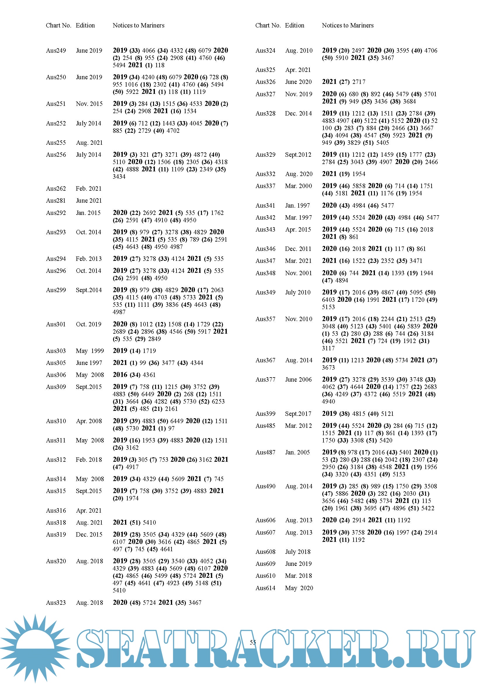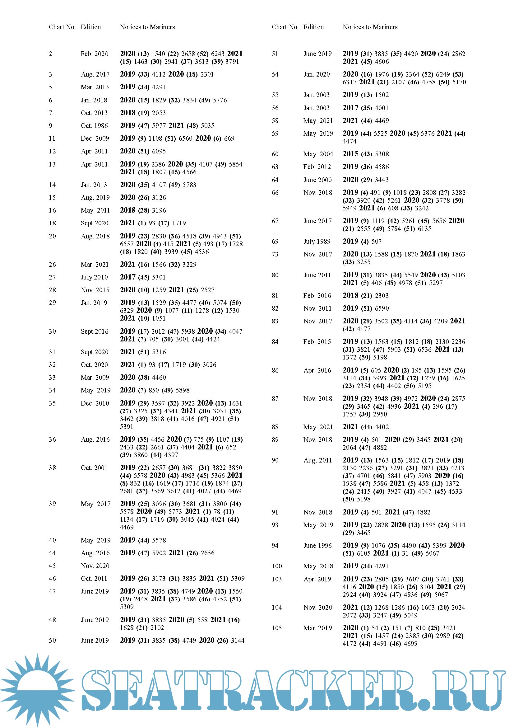 Description: The Cumulative List of ADMIRALTY Notices to Mariners (NP234 A) can help you to identify outstanding NMs and audit trails for a particular chart or charts. The list is published annually, with Part A in January