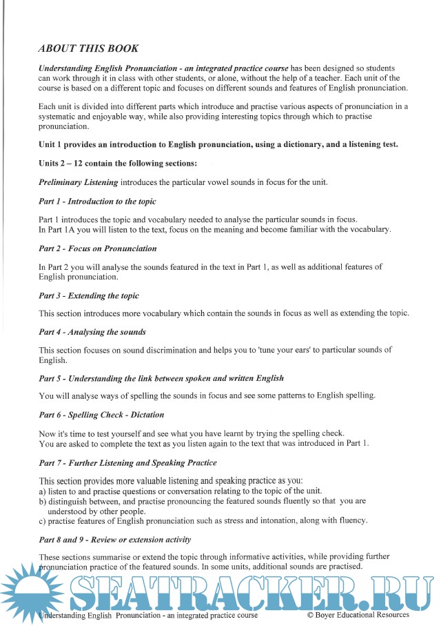 Description: Understanding English Pronunciation - an integrated practice course has been designed so students can work through it in class with other students, or alone, without the help of a teacher. Each unit of the course is based on a different topic and focuses on different sounds and features of English pronunciation.