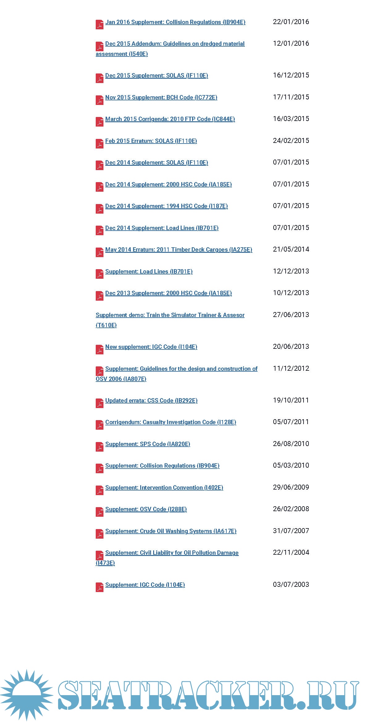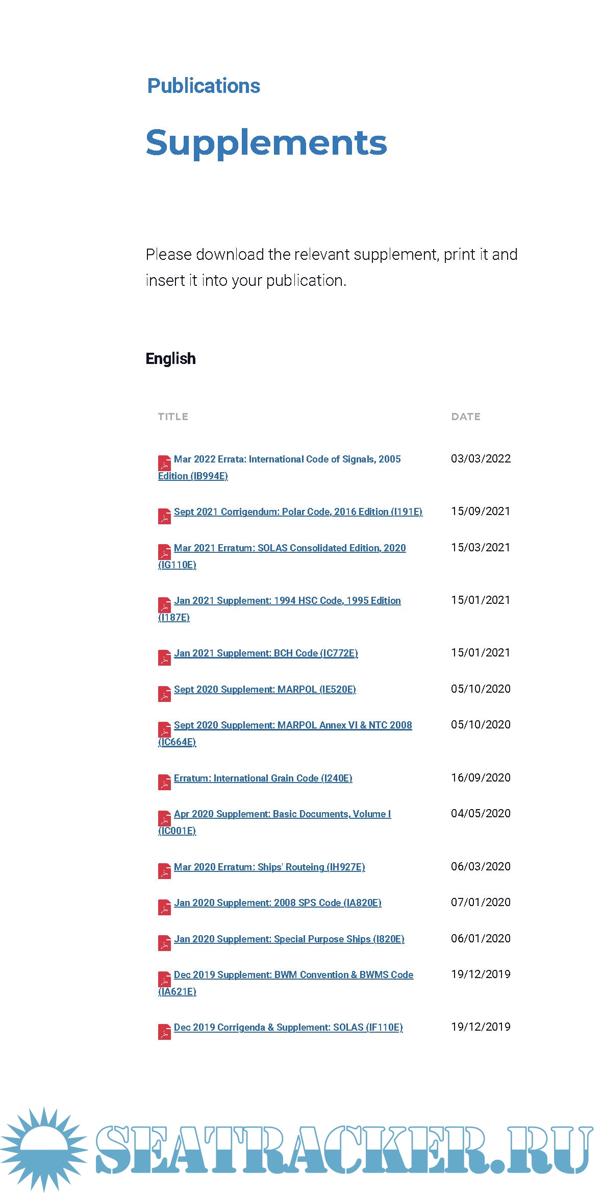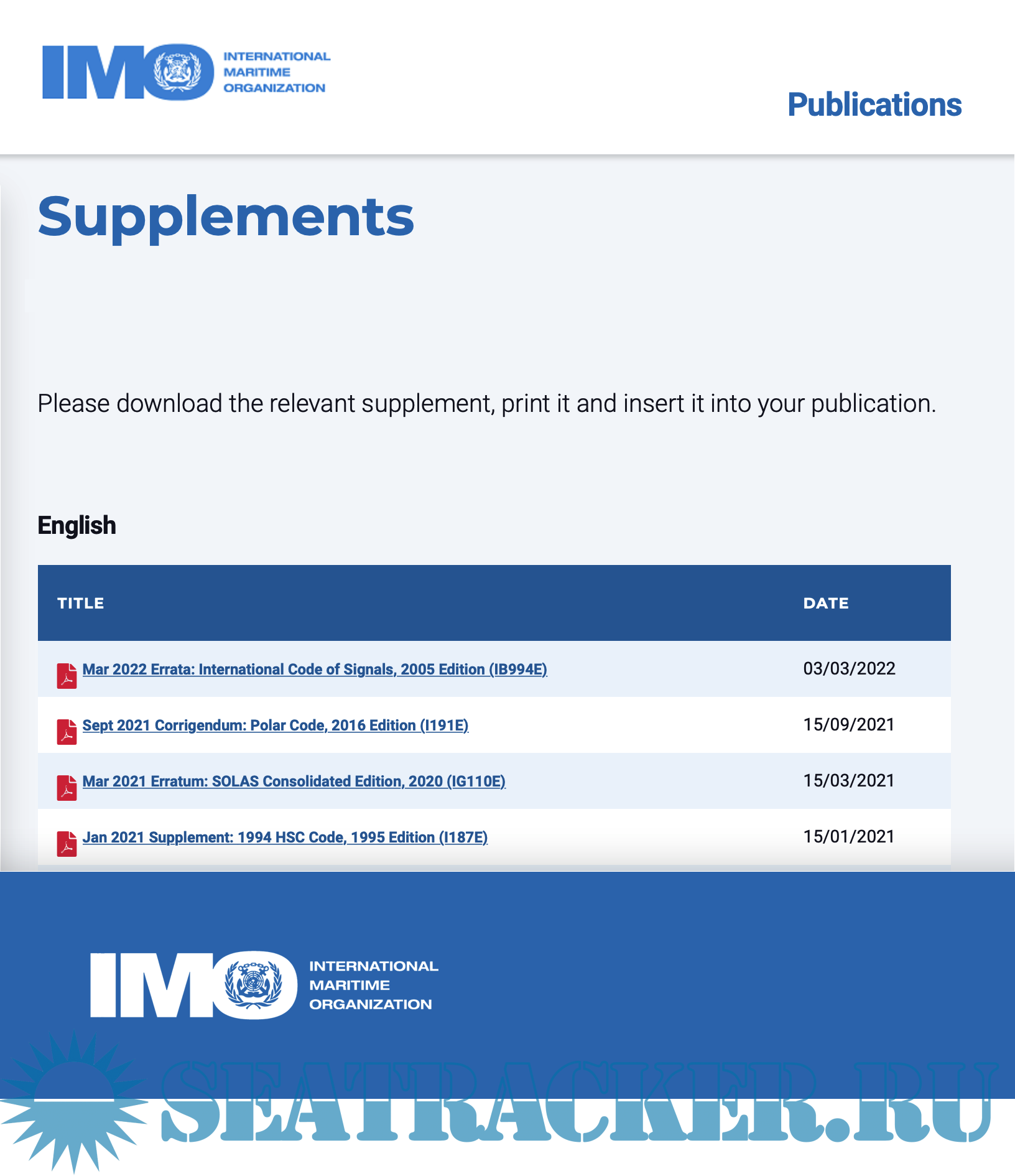 Description: IMO Publications Supplements for period of July 20003 - March 2022.