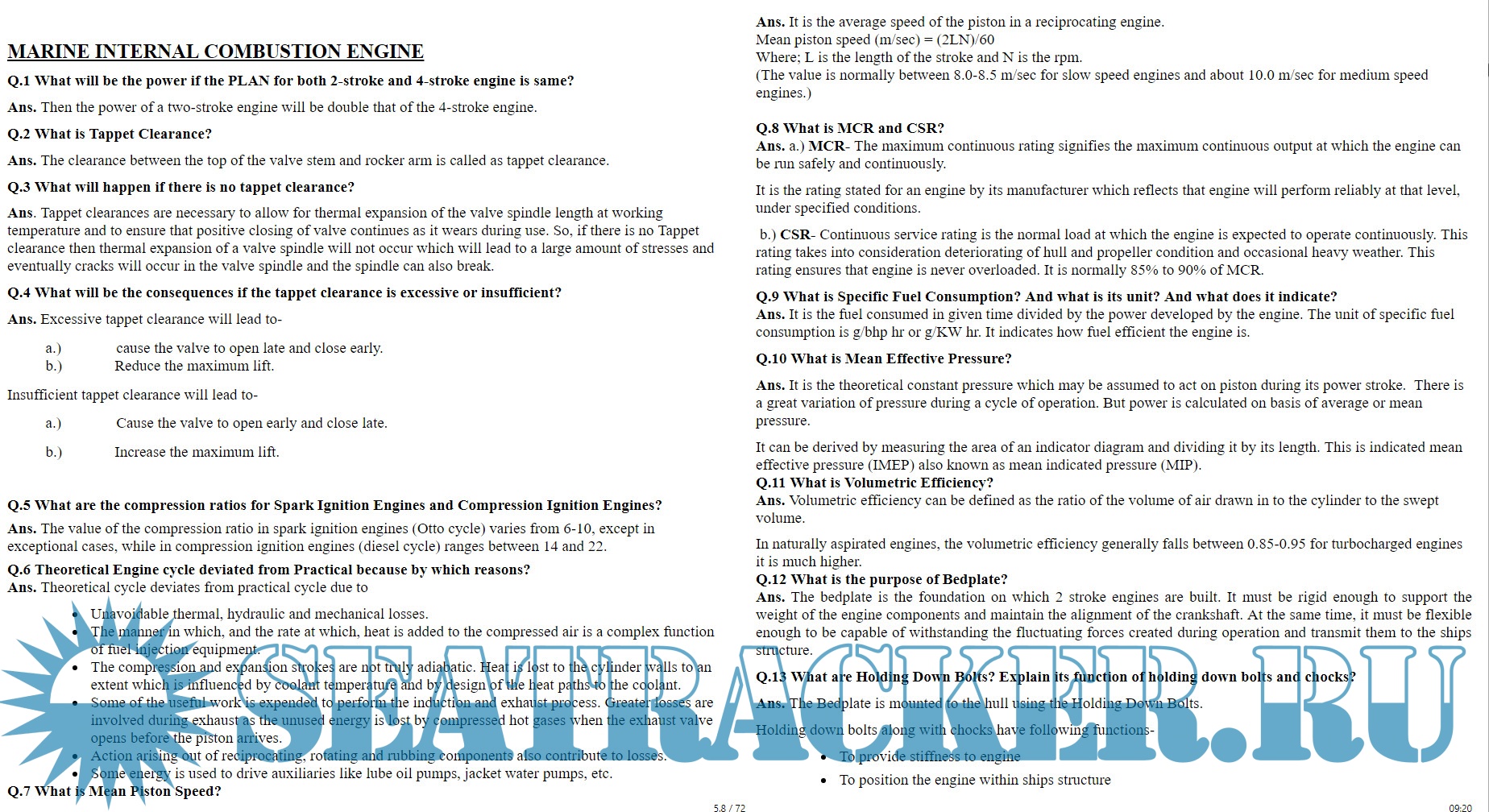 Year: 2020 Language: english Author: Vijayraj Singh & Jaivardhan Singh Publisher: The Marine Whales ISBN: 978-93-5361-598-9 Format: EPUB Quality: eBook Pages count: 72 Description: In this book, we will deal with all the technical questions that are asked in a Marine Engineering Interview. After talking to hundreds of placed cadets across the country and from our own experience, we filtered out 251 technical questions from the four-year course of Marine Engineering. All the technical questions in this book are repeatedly asked in the interview of various shipping companies. After two years of thorough research, we’re presenting you a compilation of 251 technical questions and answers which will help you to get placed.