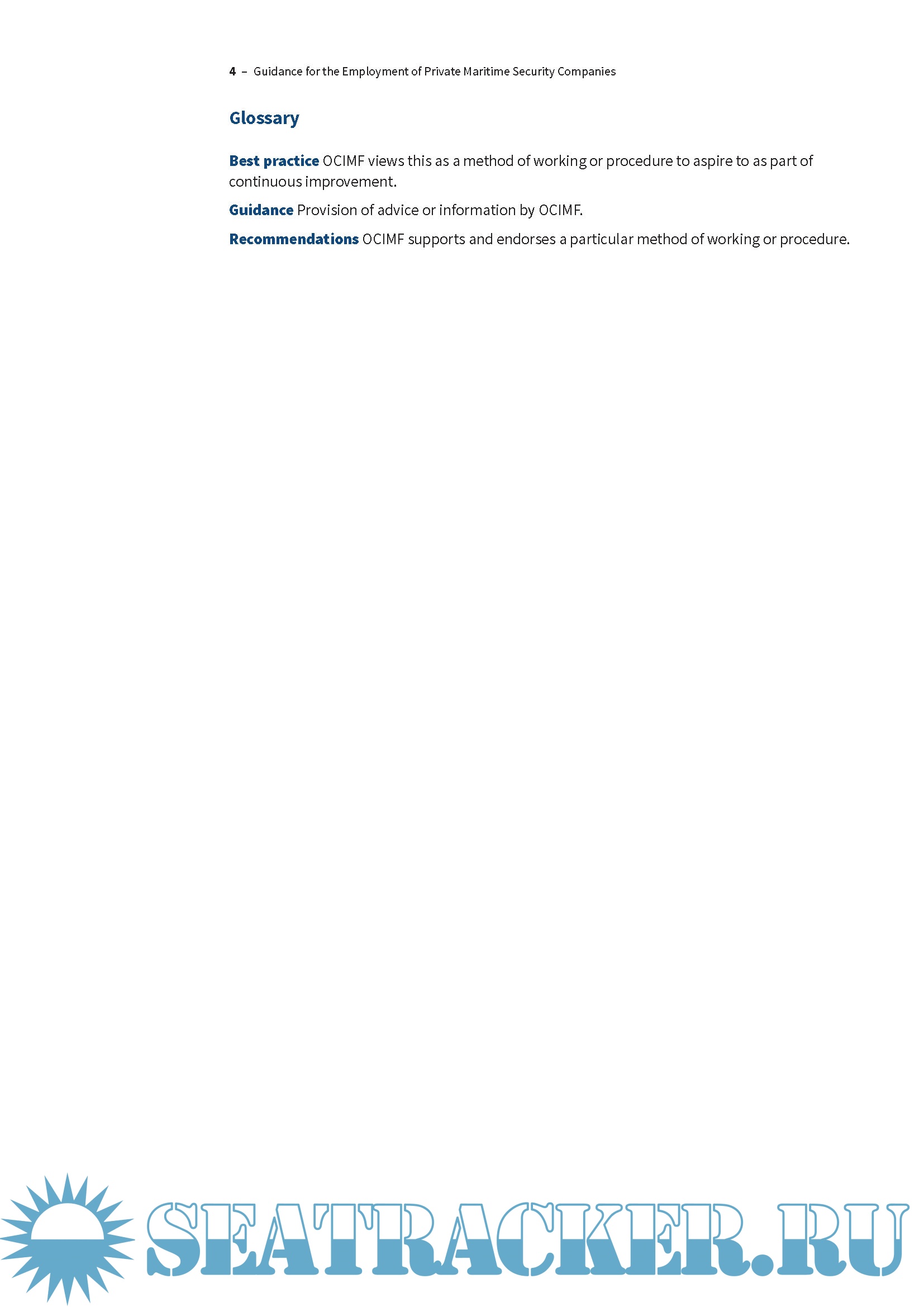 Year: 2022 Language: english Author: OCIMF Genre: Guide Edition: 1st (updated February 2022) Format: PDF Quality: eBook Pages count: 26 Description: While industry best management practice does not recommend the employment of Private Maritime Security Companies onboard ships, the use of experienced and competent PMSCs either onboard the vessels, where legally permitted, or on a security escort vessel, can mitigate risk. This guidance is intended to help owners/operators with pre-selection considerations before using private maritime security services. Section 8 has been updated in February 2022 to give additional practical advice on human factors and what potential issues PMSC management should be able to identify.