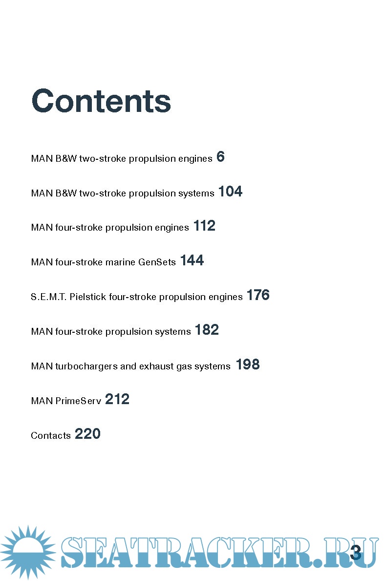 Year: 2022 Language: english Author: MAN Format: PDF Quality: eBook Pages count: 240 Description: The MAN BW Engines catalogue of 2022, with guides, descriptions and specifications. Starting with GenSets of 450 kW output for on-board power, through our four-stroke compact class and on to our giant two-stroke engines – including the largest internal combustion engine on earth with an output of almost 100 MW. The advanced features of our MAN B&W two-stroke engines of the ME generation and the common rail system of our MAN four-stroke engines ensure that we can comply with tomorrow’s emissions regulations today. Hence, in compliance with the IMO Tier II and Tier III emission regulations, two- and four-stroke engines are available in IMO Tier II and Tier III versions which are presented in the Marine Engine Programme.