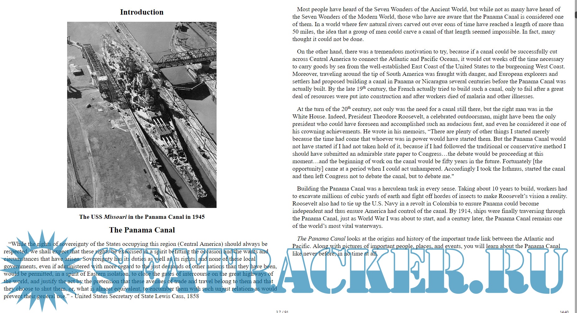 The Panama Canal looks at the origins and history of the important trade link between the Atlantic and Pacific. Along with pictures of important people, places, and events, you will learn about the Panama Canal like never before, in no time at all.