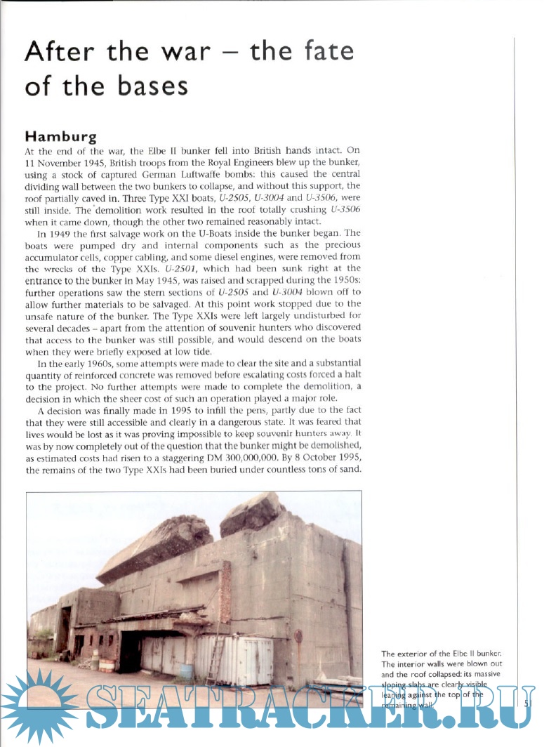 Year: 2003 Language: english Author: Gordon Williamson Genre: History Format: PDF Quality: Scanned pages Pages count: 64 Description: Few of the massive military structures built by Germany during World War II are as impressive as the U-Boat bases and bunkers in Germany, Norway and France. This title takes a close look at the formidable edifices on the French coast (Brest, Lorient, St Nazaire, La Pallice, Bordeaux) in Norway (Bergen, Trondheim) and Germany (Keil, Hamburg, Helgoland) and also focuses on the huge 'Valentin' factory complex at Bremen, which manufactured the new type XXI electro-boats. Bunker protective systems, such as camouflage, light and heavy flak installations and nearby air cover, are also examined as well as resident flotillas and the fate of the bases at war's end.