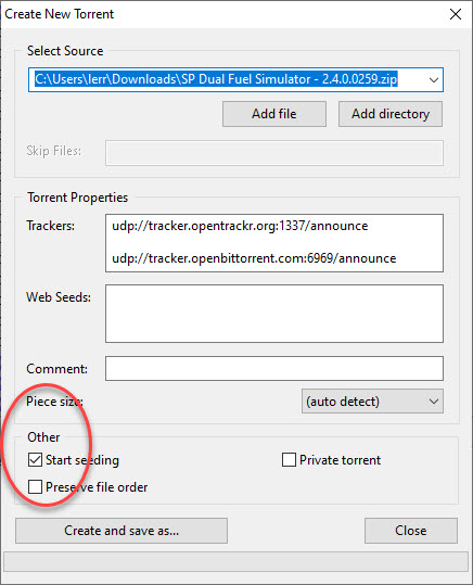 pakasi, check start seeding checkbox before create torrent
