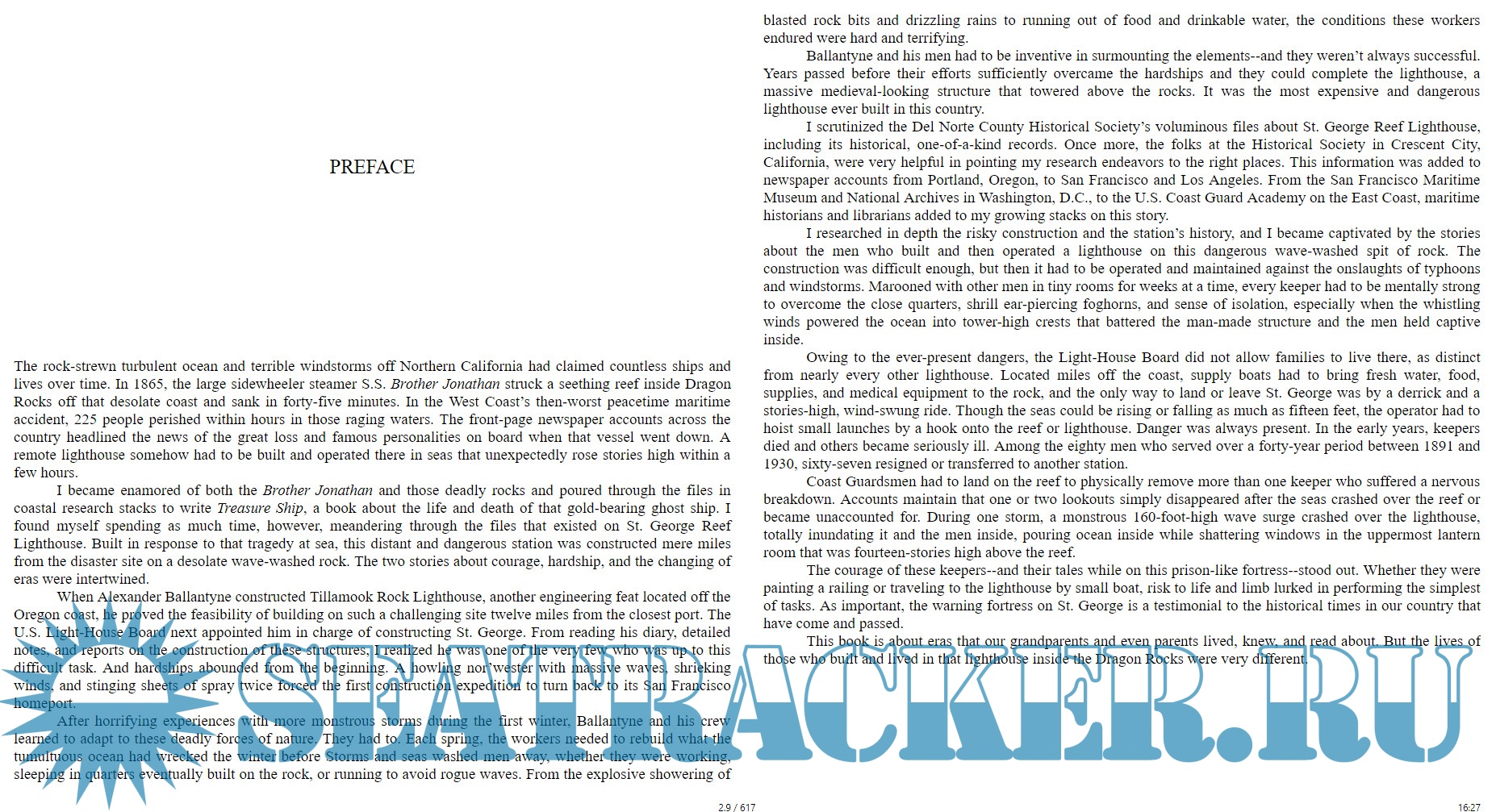 Based on five years of extensive research that draws on the National Archives, original journals, and personal interviews, Sentinel of the Seas is the first book to capture the tumultuous history of this astounding engineering feat and the lives that have been influenced by it. The author takes readers back to the dawn of lighthouse design, charting the dramatic moments and courageous people that have shaped a struggle against the oceans that culminate in the singular experience of St. George Reef. A vivid, comprehensive work of history that reads like the best adventure writing, this portrait of human tenacity and the raw fury of nature solidifies the author’s reputation as one of our finest chroniclers of the sea.
