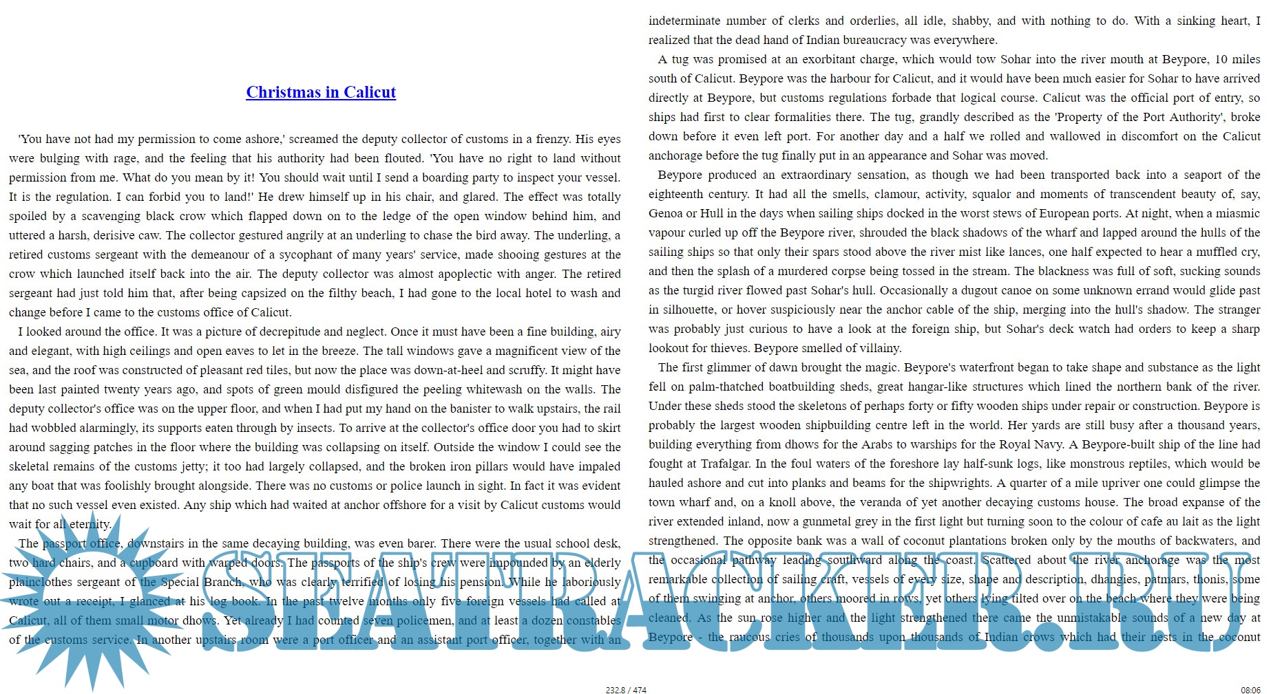 With a crew of twenty, including eight Omani sailors, his ship Sohar (named after the town said to have been Sindbad’s birthplace) completed a 6,000 mile journey by way of India, Sri Lanka, and across the Indian Ocean to Sumatra and Singapore, and finally through the China Sea to a tumultuous welcome in Canton.