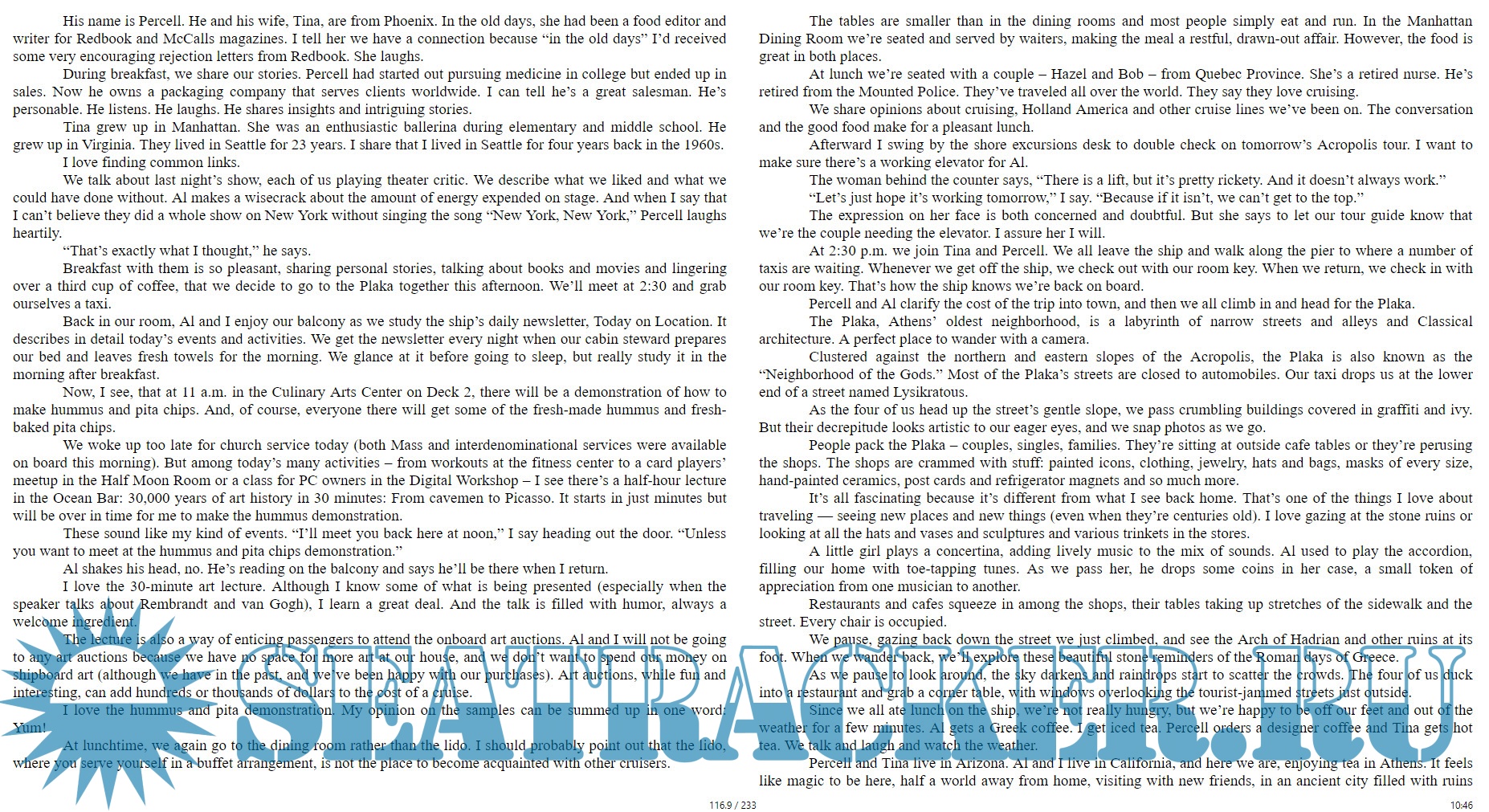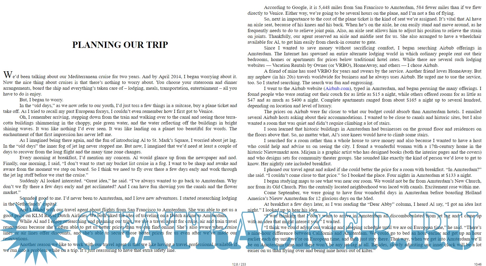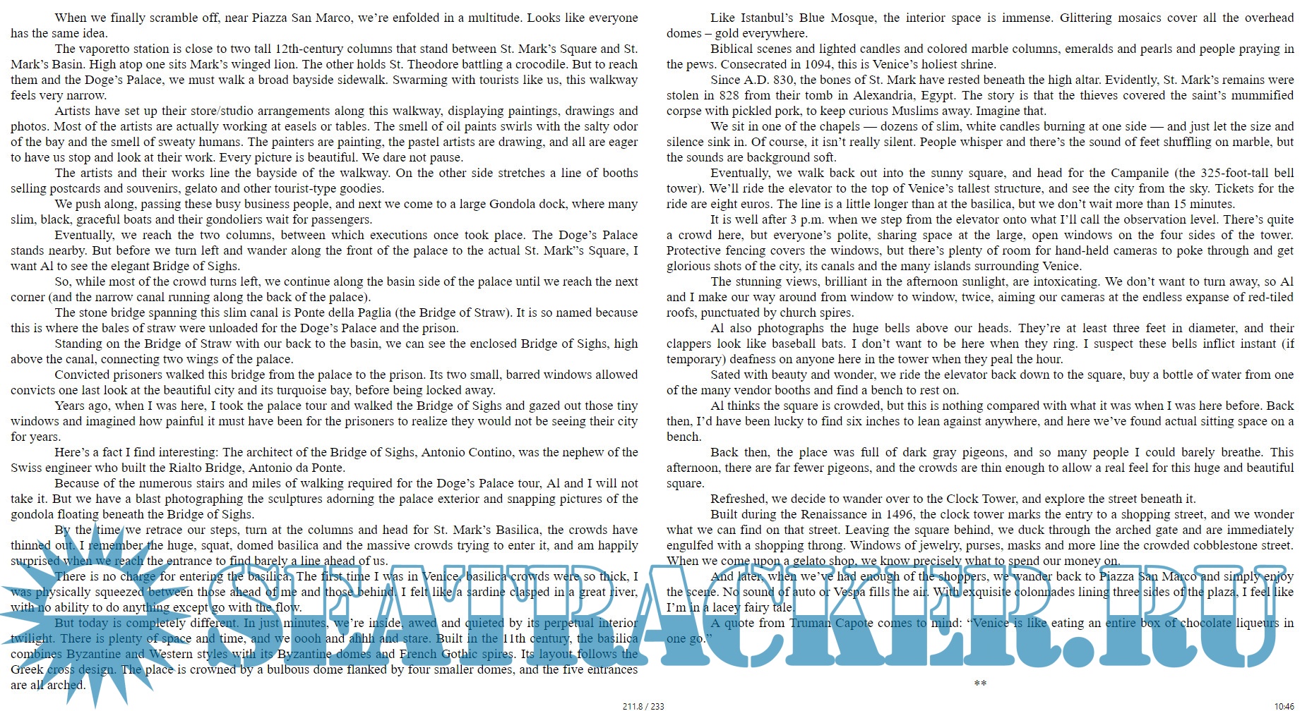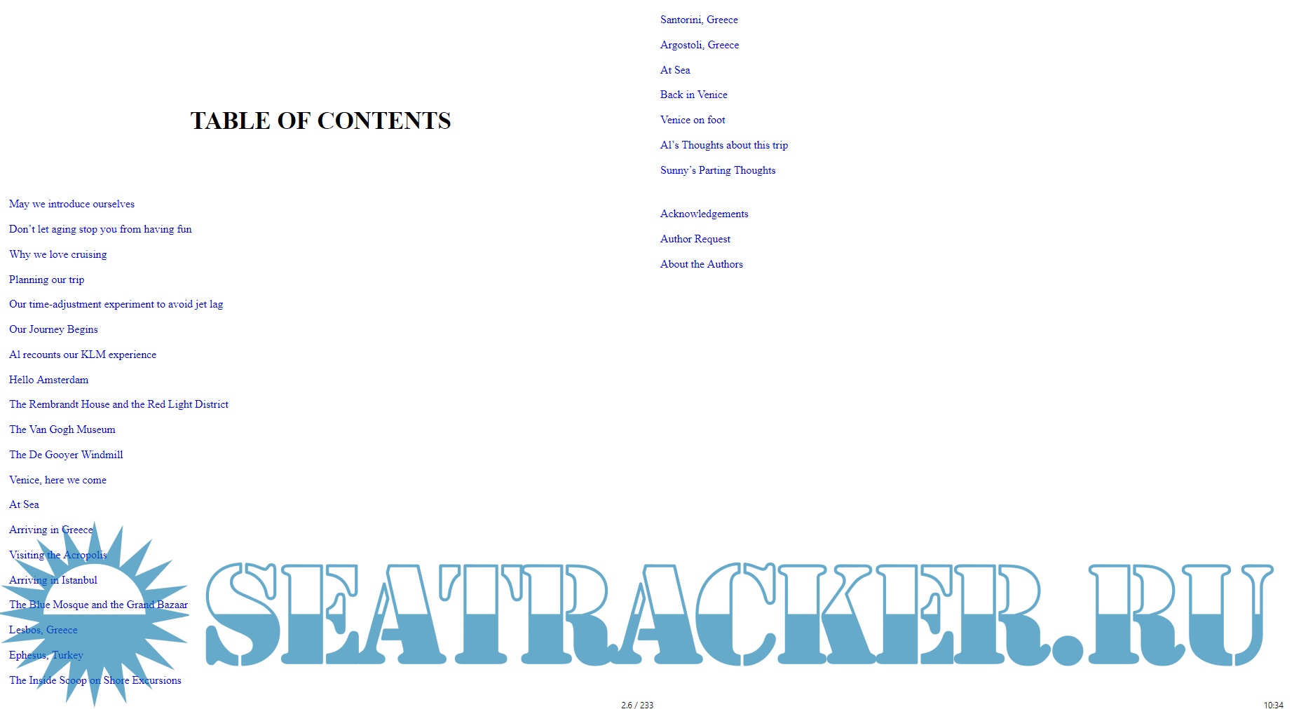 Путевые заметки семейной пары. Они путешествовали 12 дней на круизном лайнере по Средиземному морю, натурально галопом по Европам и немножко Турции. Это больше похоже на литературные заметки, чем на путеводитель.
