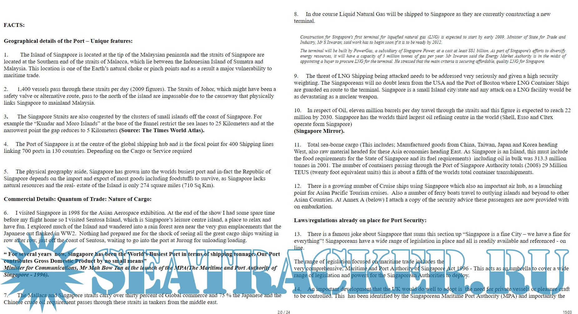 Description: Maritime Security of Singapore is essential to World trade. Steve Moore's dissertation covers essential elements of this subject.