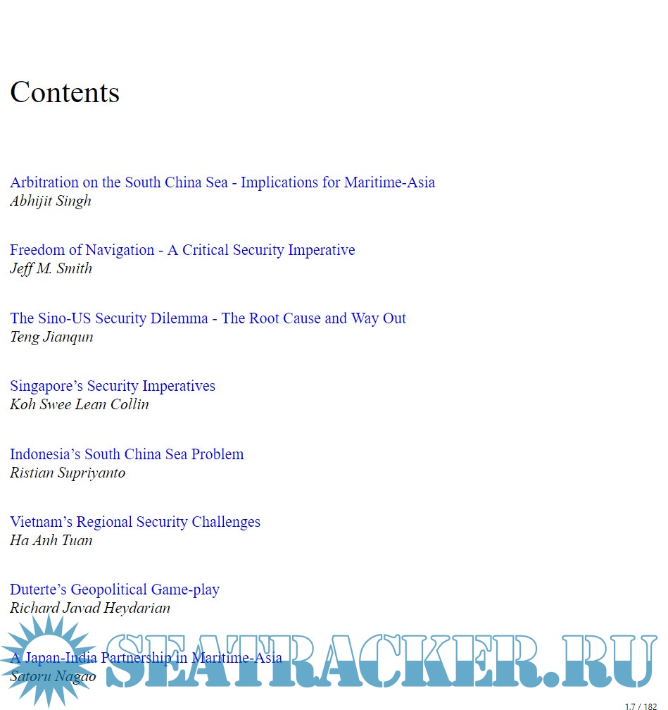 Year: 2017 Language: english Author: Abhijit Singh ISBN: 978-81-86818-27-5 Format: EPUB Quality: eBook Pages count: 152 Description: Line in the Waters looks at emerging security dynamics in the Southeast Asian littorals and their impact on Asian geopolitics and security. It presents country perspectives of the strategic implications of recent developments in the South China Sea, their implications for maritime security and the regional balance of power. After an Arbitral Tribunal pronounced a verdict in July 2016, invalidating China’s historical rights in the South China Sea, there is fear that the dispute might turn into a flashpoint for conflict. Beyond dwelling on the strategic deadlock that characterises the current state-of-play, contributors outline possible solutions and a way forward.