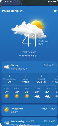 • Toggle between multiple cities and spy on weather in other parts of the world. Bookmarked locations will help you to quickly switch to your favorite spots and check today’s weather or find out the forecast for tomorrow.