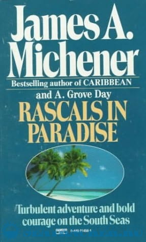 Description: n a thrilling collection of nonfiction adventure stories, James A. Michener returns to the most dazzling place on Earth: the islands that inspired Tales of the South Pacific. Co-written with A. Grove Day, Rascals in Paradise offers portraits of ten scandalous men and women, some infamous and some overlooked, including Sam Comstock, a mutinous sailor whose delusions of grandeur became a nightmare; Will Mariner, a golden-haired youth who used his charm to win over his captors; and William Bligh, the notorious HMS Bounty captain who may not have been the monster history remembers him as. From lifelong buccaneers to lapsed noblemen, in Michener and Day’s capable hands these rogues become the stuff of legend.
