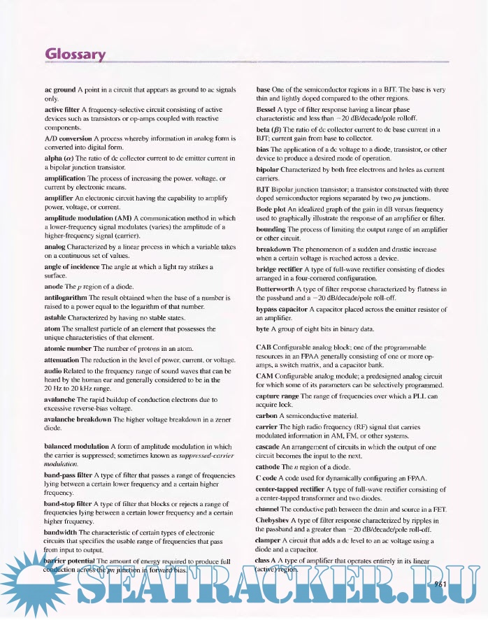 Year: 2005 Language: english Author: Thomas L. Floyd Publisher: Pearson Education International Edition: 7th ISBN: 0-13-127827-4 Format: PDF Quality: Scanned pages Pages count: 992 Description: This seventh edition of Electronic Devices has been carefully revised and some important new topics have been added. Several recommendations from reviewers and current users have been incorporated to make this edition better. A comprehensive coverage of electronic devices and circuits, including troubleshooting and System Applications, is provided. Chapters 1 through 11 are essentially devoted to fundamental discrete devices and circuits. Chapters 12 through 18 primarily cover linear' integrated circuits. Chapter 19 is a new chapter that is completely devoted to p-ogrammable analog devices. Data sheets are introduced in certain areas to provide a practical connection with actual devices. Extensive exercises and problems using Multisim® circuit simulation are designed to help students verily’ circuit theory and develop troubleshooting and measurement skills. New in This Edition New Chapter on Programmable Analog Devices Chapter 19 introduces field-programmable analog arrays (FPAAs) and how to program them. Also, switched-capacitor circuits are described because they are basic to FPAA technology. Circuit-Action Quiz This feature is at the end of most chapters. It checks students' understanding of how changes in certain parameters affect the behavior of a circuit. Given a specified change in one parameter, students determine the resulting effect (increase, decrease, no change) in another parameter or parameters. More Coverage of Optical Topics High-intensity LEDs are introduced and a new section on fiber optics has been added New Devices New sections on differential amplifiers and the TGBT (insulated gate bipolar' transistor) are now included. General Improvements Obsolete devices have been replaced, text descriptions have been reworded for greater clarity, and graphics have been enhanced in certain areas for better appearance or improved effectiveness. Additional info: International Edition.