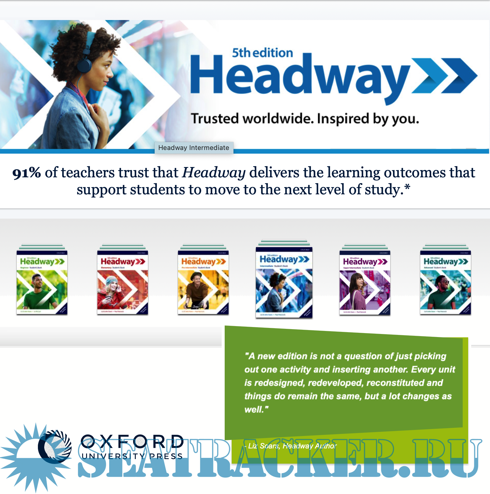 Updated with new texts, topics and themes, Headway 5th edition provides fresh and relevant English instruction that is tailored to your students’ needs. Headway and its award-winning authors, Liz and John Soars, are names that have become synonymous with English Language Teaching and learning. Teach with Headway’s perfectly-balanced grammar and skills syllabus, based on the course’s world-renowned methodology. Headway 5th edition retains the course’s trusted methodology and has been updated with new texts, topics and digital resources.