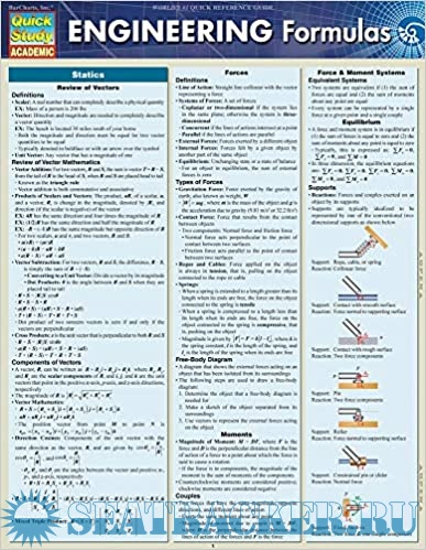 Year: 2018 Language: english Author: Ajmera, Beena Genre: Other ISBN: 1423223594 Format: PDF Quality: eBook Pages count: 6 Description: Core engineering concepts defined with mathematical formulas and diagrams that will support an engineer in courses throughout their student years, as a refresher before certification testing, and as a handy reference throughout a professional career. Precise coverage and easy access makes this a valuable six pages in an immensely critical field of study and application. 6 page laminated guide includes Statics: Vectors, Forces, Moments, Equilibrium, Centroids, Distributed Loads, Centers of Mass, Moments of Inertia Dynamics: Particle Kinematics, Particle Kinetics, Energy & Momentum Methods, Kinetics of Rigid Bodies, Plane Motion, Three Dimensional Kinetics Mechanics of Materials: Intro, Static Failure Theories, Variable Loading Failure Theories, Torsion, Beams, Columns Fluid Mechanics: Intro, One Dimensional Flows, Steady Incompressible Flow Through Pipes or Conduits, Impulse & Momentum, Multipath Pipelines, Flow in Open Channels, Measurements