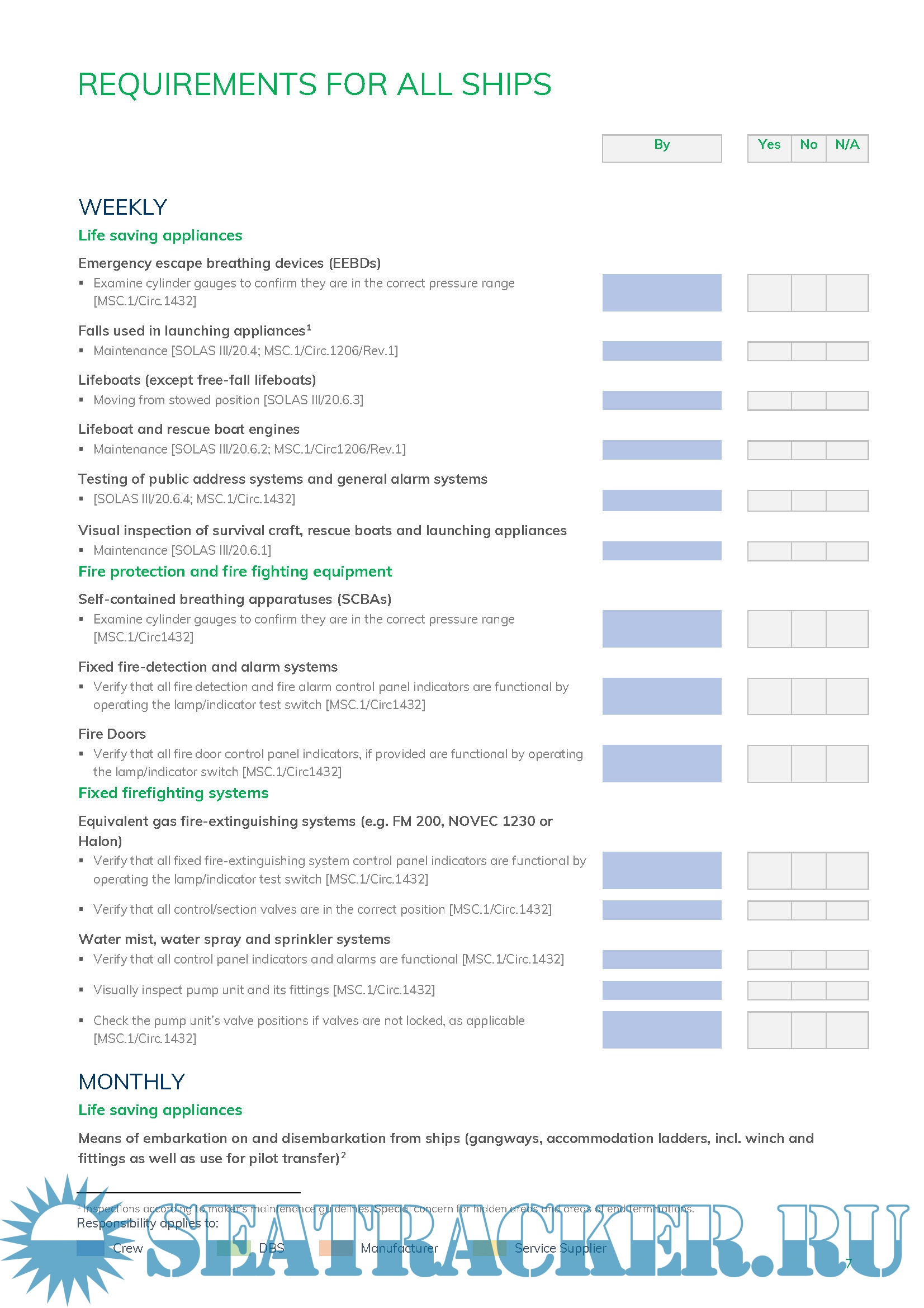 Description: Updated technical publication concerning the requirements for maintenance and inspection of firefighting, lifesaving and radio equipment as well as drills as per statutory instruments.