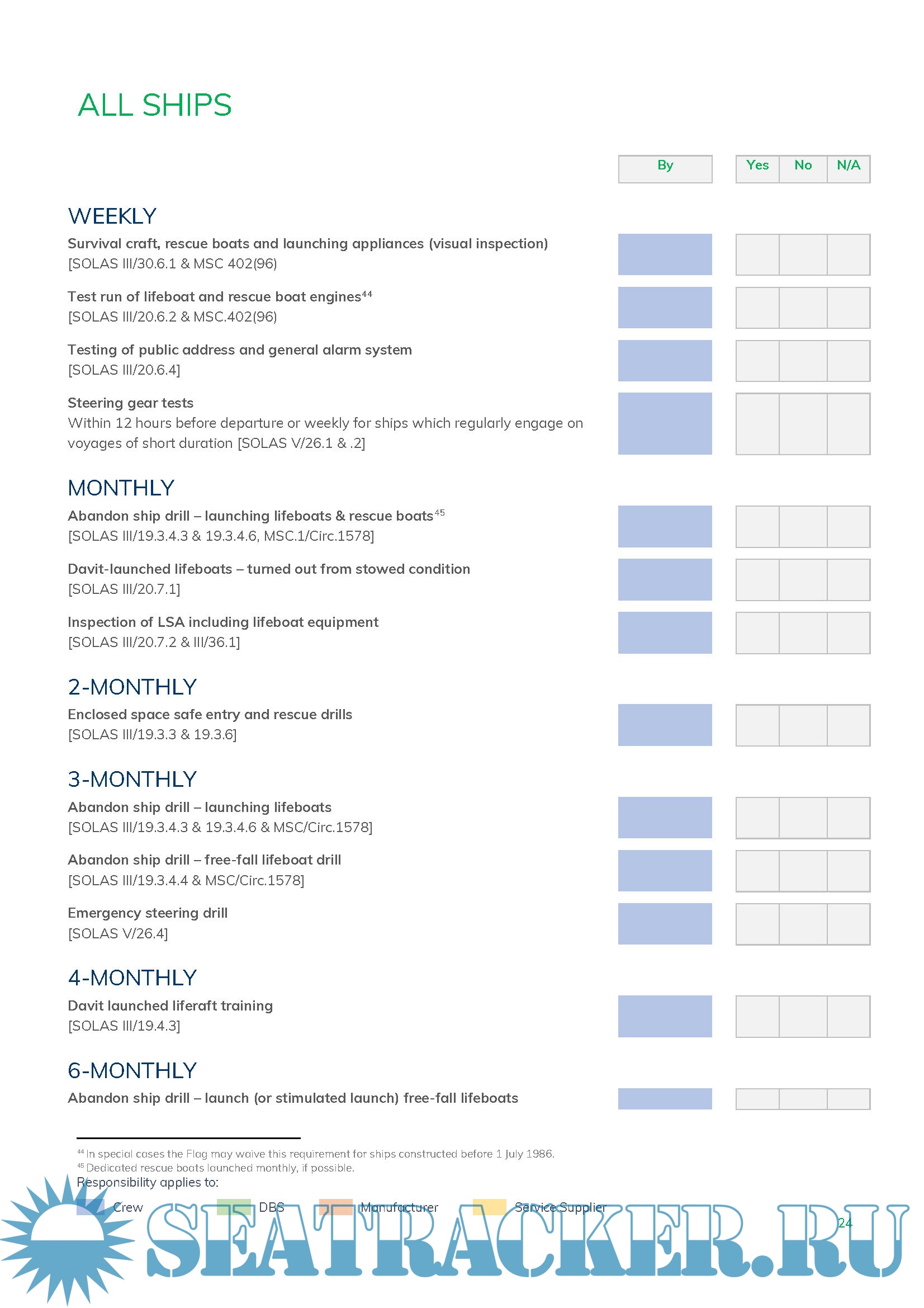 On board Maintenance and Drills agenda - DBS [2020, PDF]