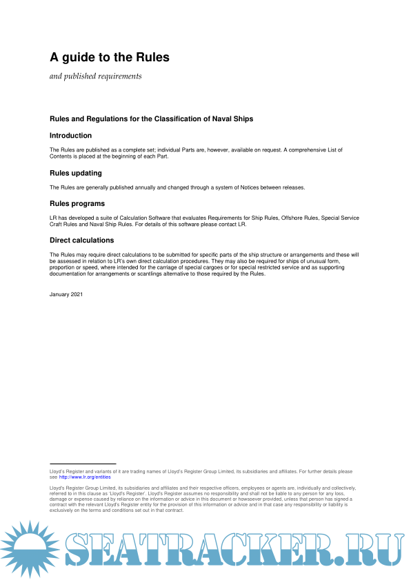 Year: 2021 Language: english Author: Lloyd’s Register Format: PDF Quality: eBook Pages count: 1380 Description: Background 1.1 Lloyd’s Register Group Limited is a registered company under English law, with origins dating from 1760. It was established for the purpose of producing a faithful and accurate classification of merchant shipping. It now primarily produces classification Rules. 1.2 Classification services are delivered to clients by a number of other members subsidiaries and affiliates of Lloyd’s Register Group Limited, including but not limited to: Lloyd’s Register EMEA, Lloyd’s Register Asia, Lloyd’s Register North America, Inc., and Lloyd’s Register Central and South America Limited. Lloyd’s Register Group Limited, its subsidiaries and affiliates are hereinafter, individually and collectively, referred to as ‘LR’.