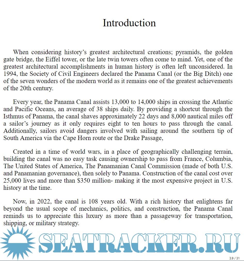 Year: 2022 Language: english Author: David Edward Genre: History Format: PDF Quality: eBook Pages count: 31 Description: When considering history’s greatest architectural creations; pyramids, the golden gate bridge, the Eiffel tower, or the late twin towers often come to mind. Yet, one of the greatest architectural accomplishments in human history is often left unconsidered. In 1994, the Society of Civil Engineers declared the Panama Canal (or the Big Ditch) one of the seven wonders of the modern world as it remains one of the greatest achievements of the 20th century. Every year, the Panama Canal assists 13,000 to 14,000 ships in crossing the Atlantic and Pacific Oceans, an average of 38 ships daily. By providing a shortcut through the Isthmus of Panama, the canal shaves approximately 22 days and 8,000 nautical miles off a sailor’s journey as it only requires eight to ten hours to pass through the canal. Additionally, sailors avoid dangers involved with sailing around the southern tip of South America via the Cape Horn route or the Drake Passage. "A Short History Of…" is a collection of short books, about 5,000 words each. The goal of each book is a quick overview of a unique topic or focus area. Some are mainstream, some are not, but each subject is fascinating in and of itself. Every book introduces the topic, provides a timeline encompassing significant events, identifies 'good' facts that are believed to be true and 'popular' facts that may be inaccurate. It also conducts a deep dive into three of the most prominent timeline events or items associated with the subject.