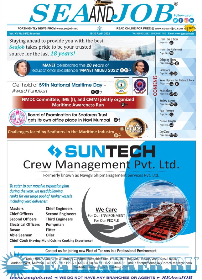 Description: The Sea and Job magazine launched in May 2007, was the second venture of Sea Line Group succeeding 'seajob.net' bringing the much renowned essence to the Group, the Sea and Job Magazine quickly gained popularity, becoming the No. 1 Shipping Magazine that came to be widely circulated all over India. Sea and Job over the years has evolved as the most trusted, ethical, objective and read maritime publication that possesses a large database of subscribers from various verticals in the industry.