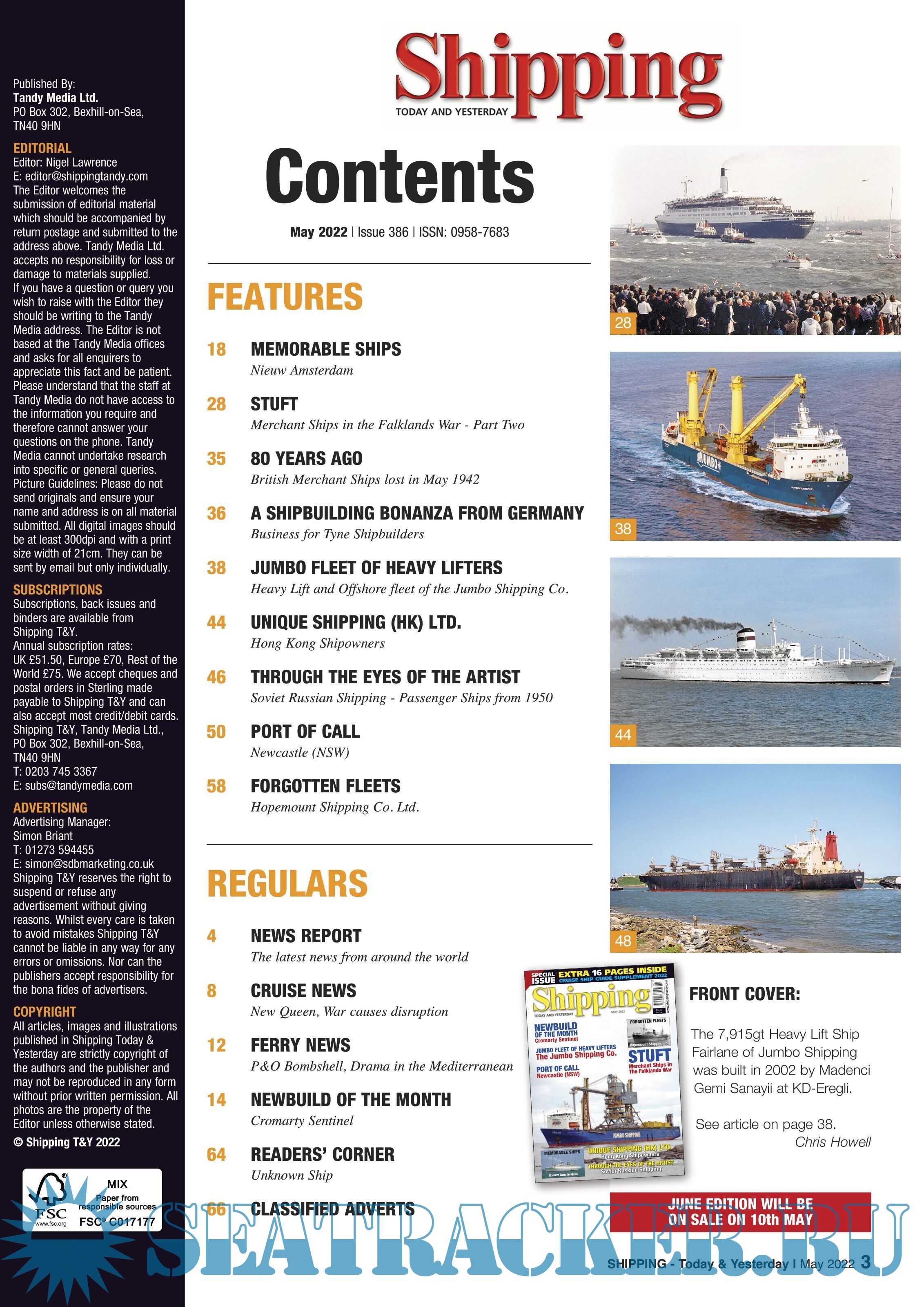 Shipping T&Y is a monthly magazine for the shipping enthusiast offering up-to-date information,