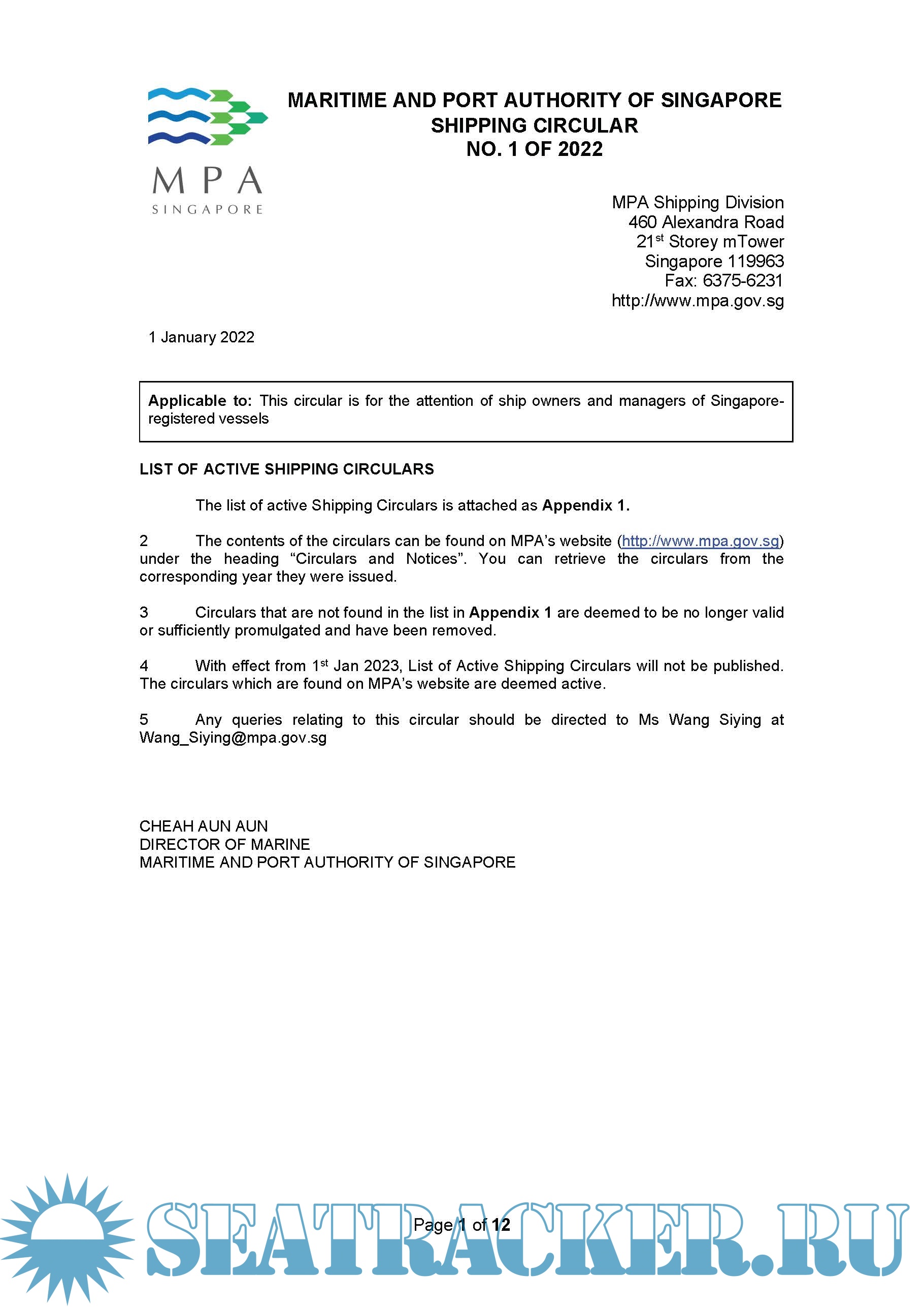 Description: in force Flags' Administrations Circulars up to year of 2022