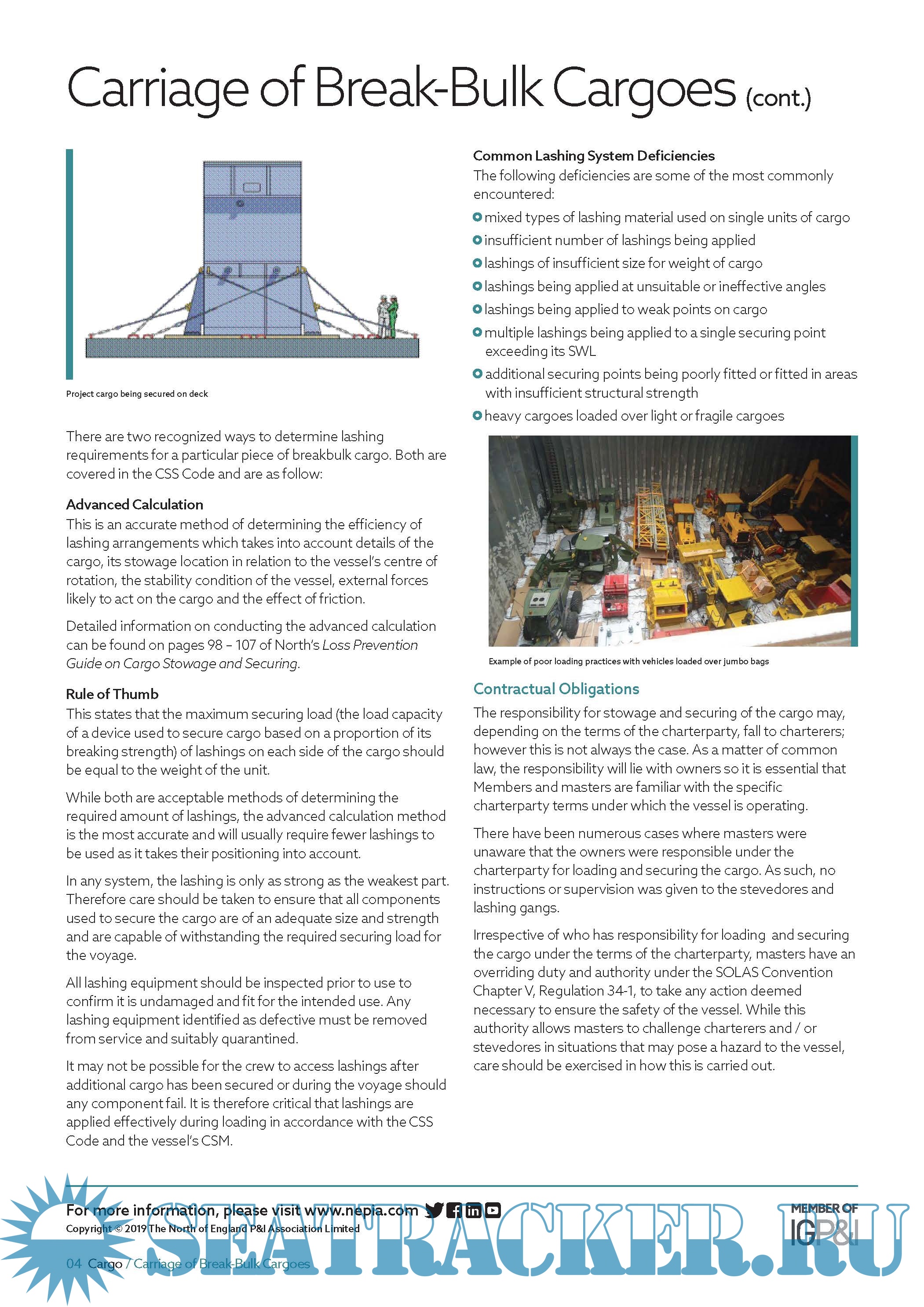 This briefing provides loss prevention advice on the planning, loading, stowage and securing of breakbulk cargoes, and addresses some of the issues which have contributed to recent incidents.