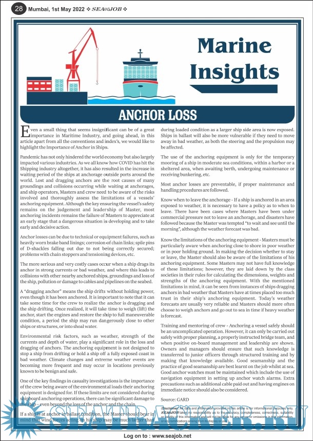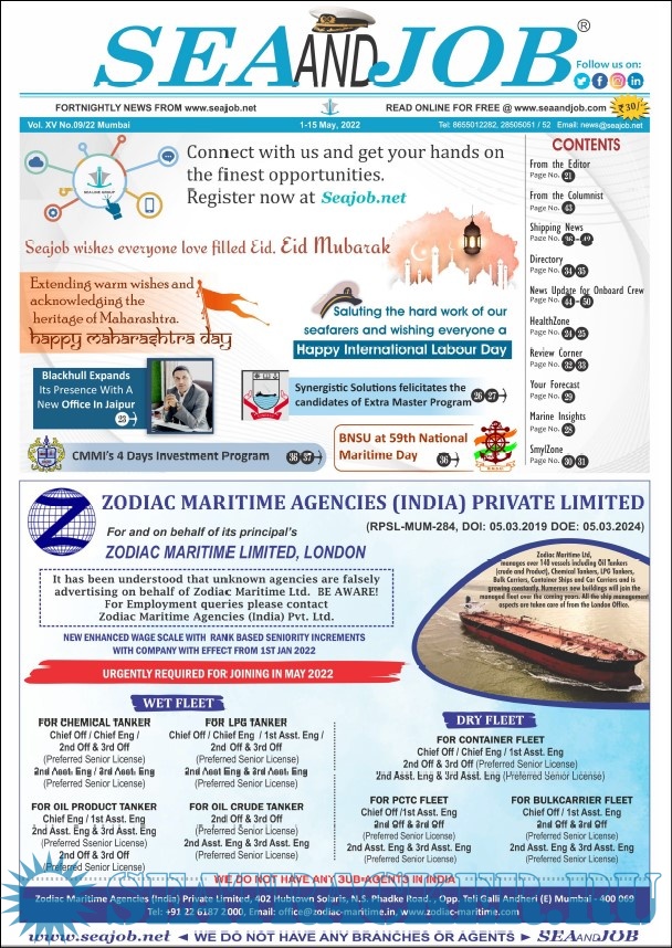 Description: The Sea and Job magazine launched in May 2007, was the second venture of Sea Line Group succeeding 'seajob.net' bringing the much renowned essence to the Group, the Sea and Job Magazine quickly gained popularity, becoming the No. 1 Shipping Magazine that came to be widely circulated all over India. Sea and Job over the years has evolved as the most trusted, ethical, objective and read maritime publication that possesses a large database of subscribers from various verticals in the industry.The magazine provides informative and interesting articles covering not just the shipping world but also the world outside it.Sea and Job is also a medium for the shipping/ manning companies to advertise marine jobs and also to promote their organization by publicizing internal activities like seminars, sports events and parties.Some notable endeavors of the magazine include the Know Your Recruiter Column, the Sailing Episodes Column and the Marine Insights section. The consistent efforts and the dedication to provide extraordinary services to the industry has resulted in the magnifying popularity and patronage of Sea and Job.