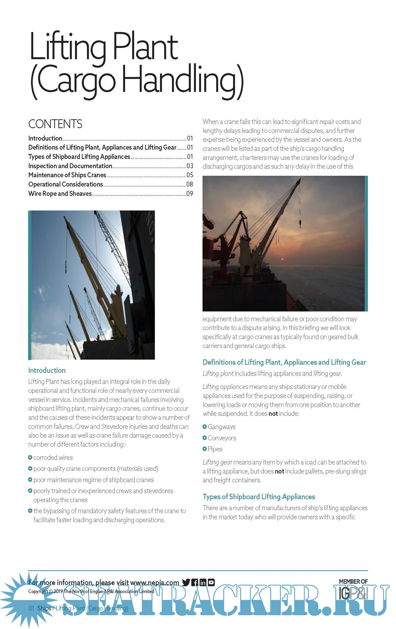 Description: Lifting Plant has long played an integral role in the daily operational and functional role of nearly every commercial vessel in service. Incidents and mechanical failures involving shipboard lifting plant, mainly cargo cranes, continue to occur and the causes of these incidents appear to show a number of common failures. Crew and Stevedore injuries and deaths can also be an issue as well as crane failure damage caused by a number of different factors including: