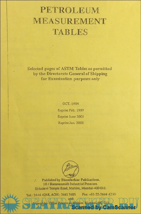Additional info: Selected pages of ASTM tables as permitted by the Directorate General of Shipping, India for examination purpose only.