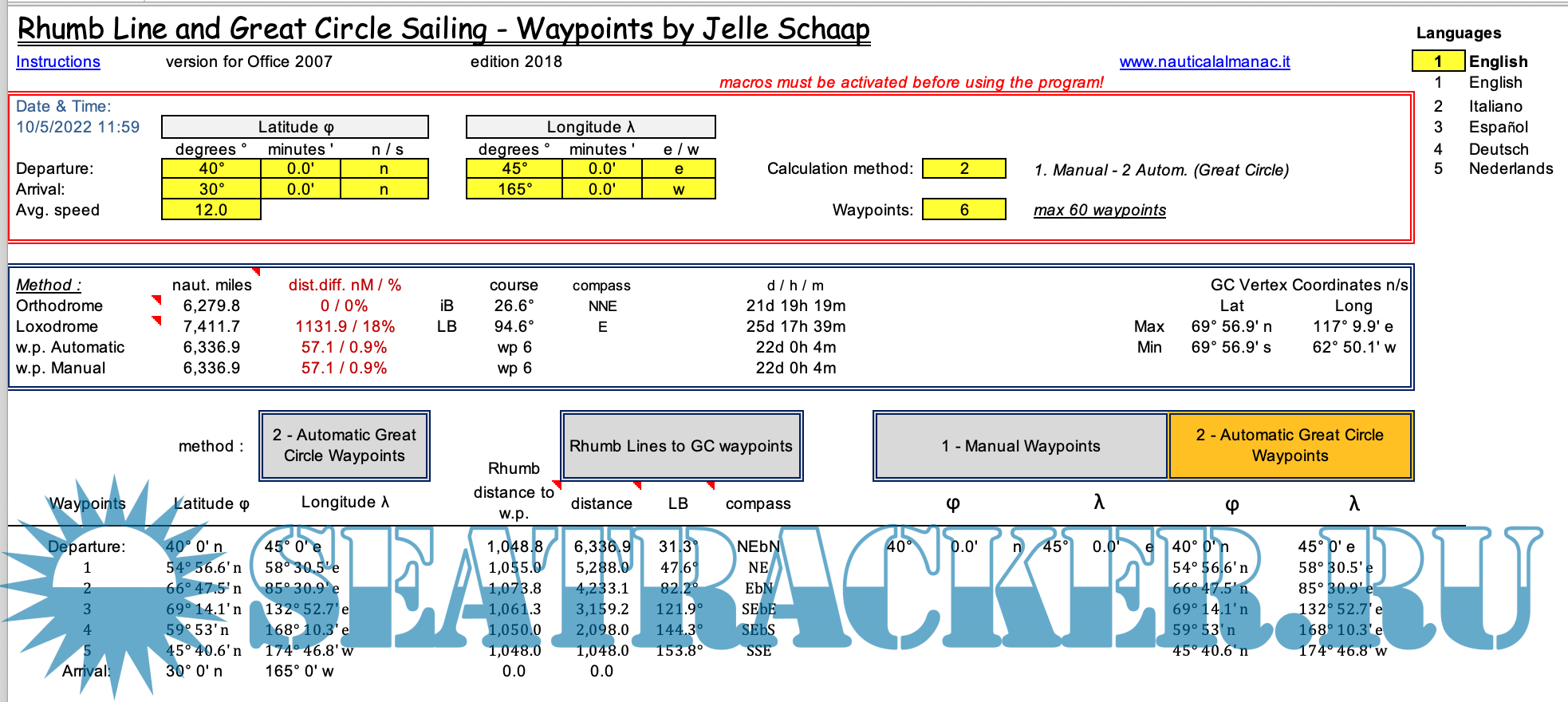 Nautical Software in MS Excel format