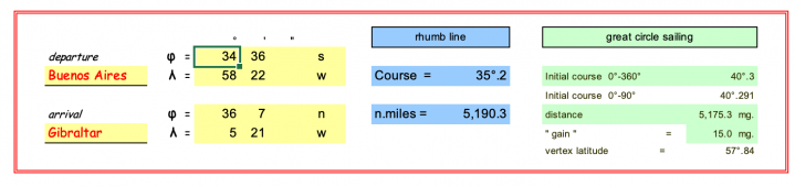 1. Great cycle - Rhumb line sailing
