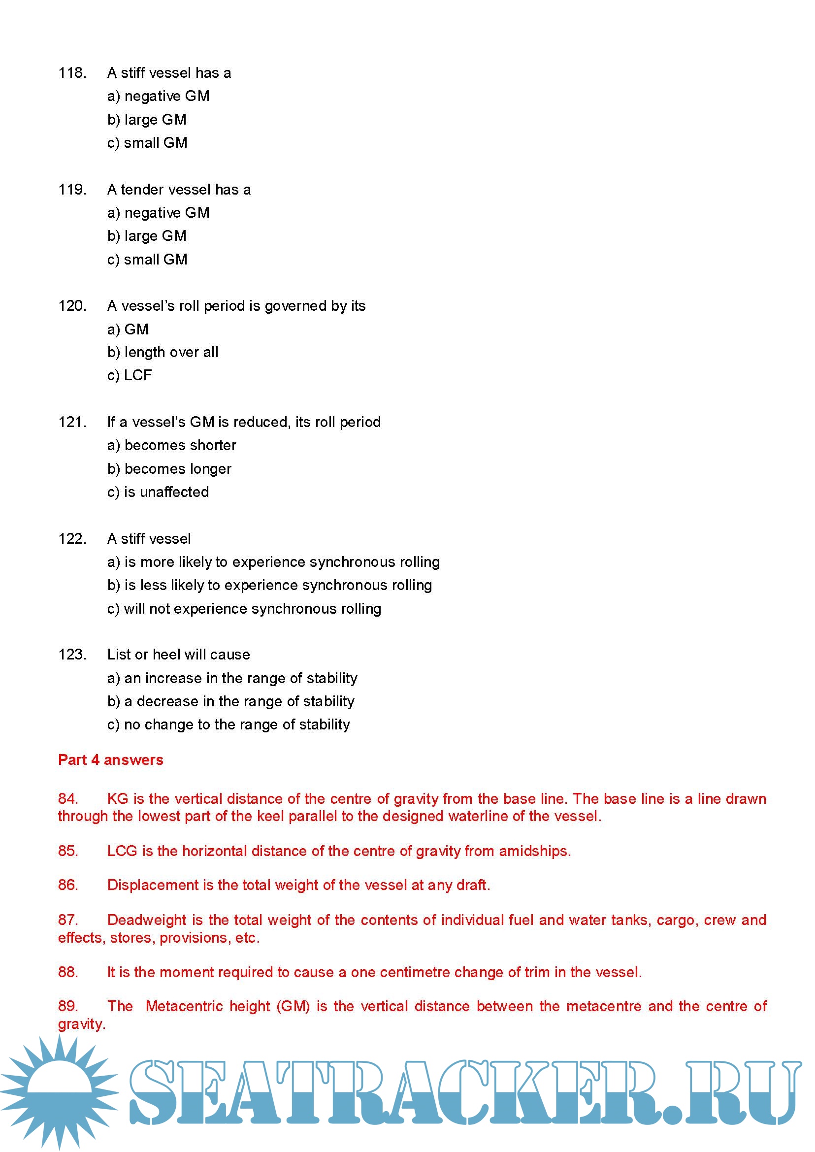 AMSA maritime exam "Ship knowledge" - Questions and Answers