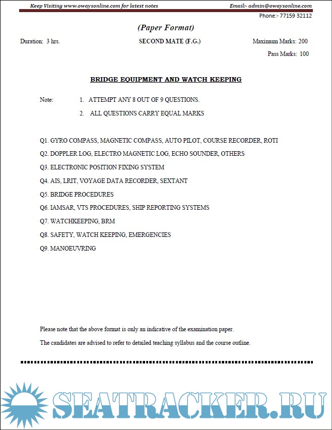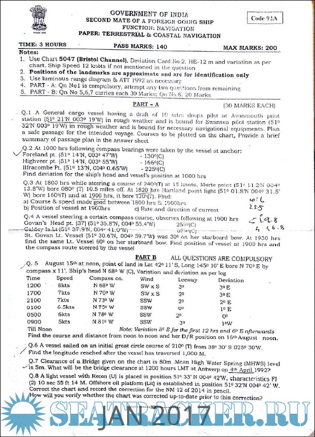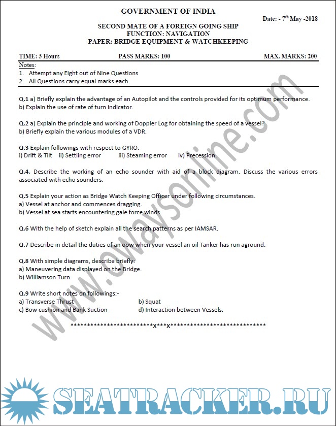 Description: 2nd Mate (F.G.) question paper sets for Mercantile Marine Department (MMD), India Exams.