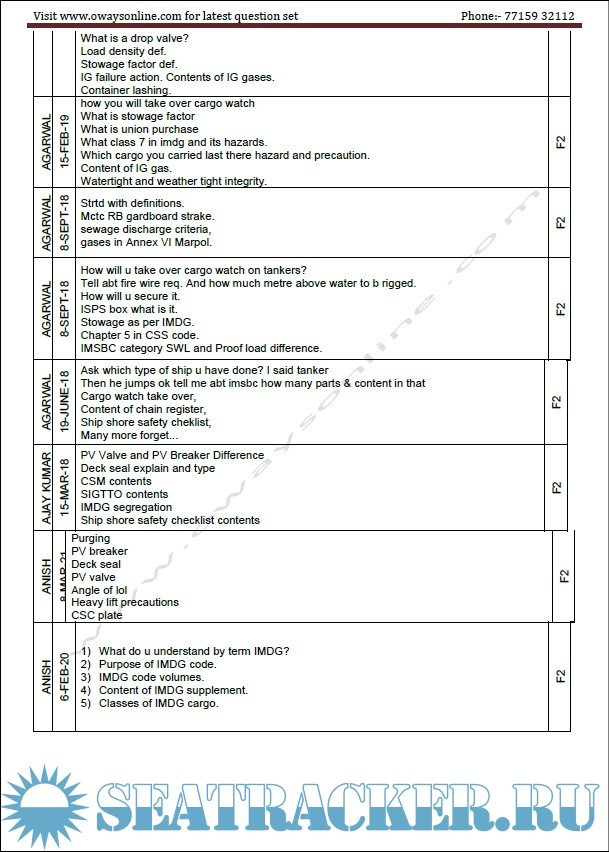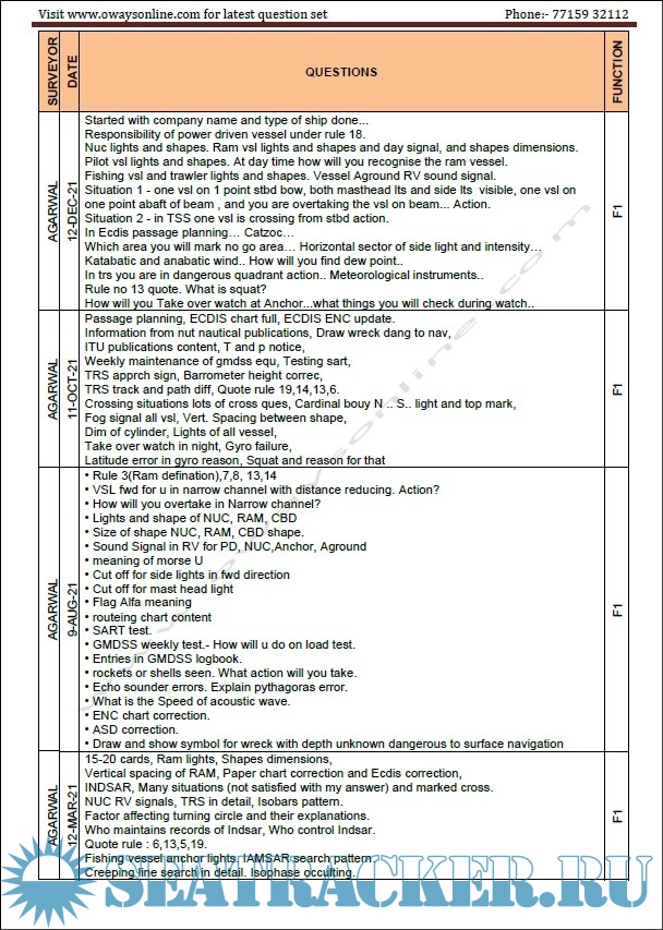 ➢ You might find some questions quite old, as those surveyors still comes in MMD/ D.G. However they are taking orals of other candidates and not Second Mates. However, if the surveyor of Second mates doesn’t come, they might take your orals.