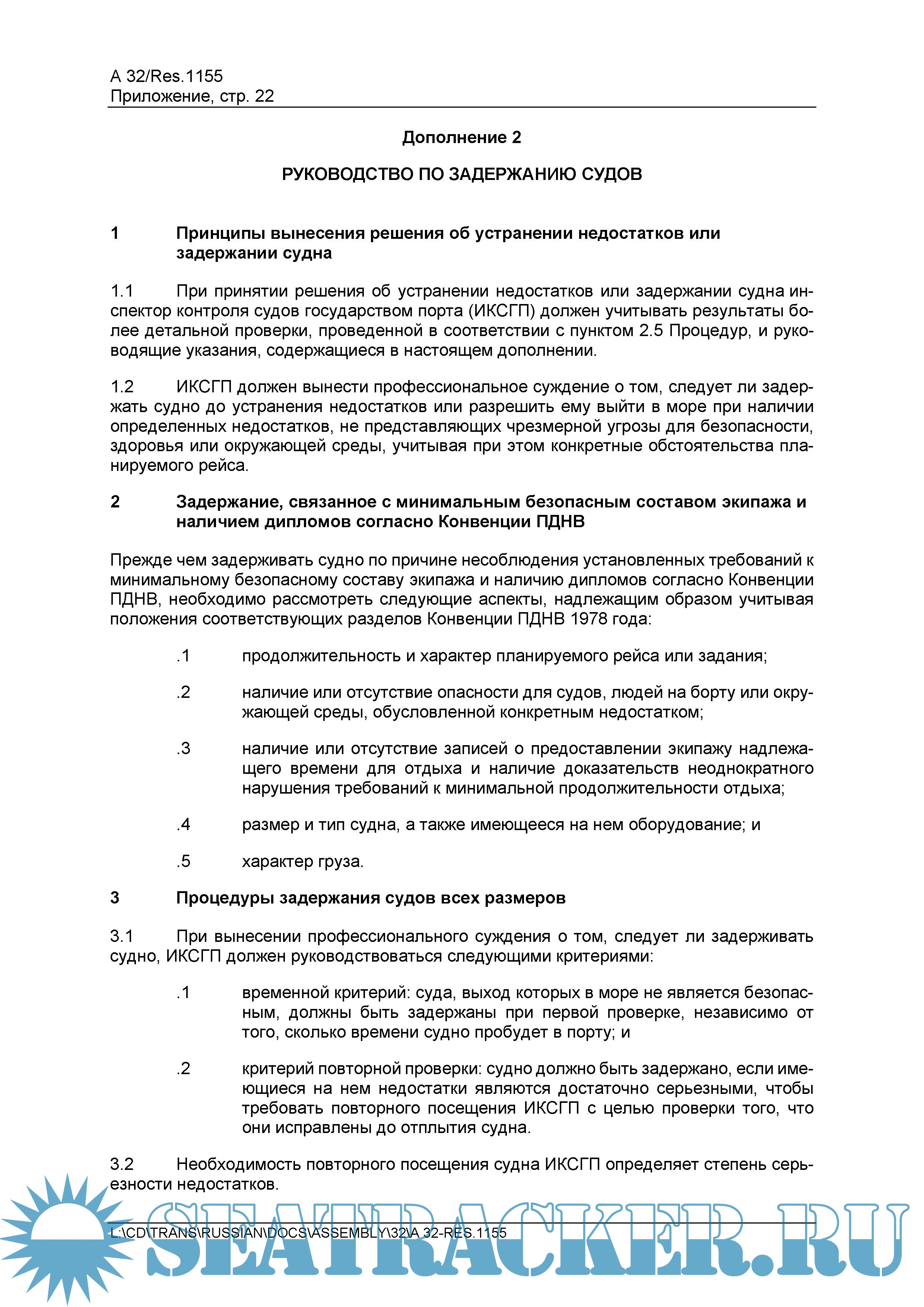 Принципы минимального безопасного состава экипажа судна (резолюция А.1047 (27)) [2012, PDF]