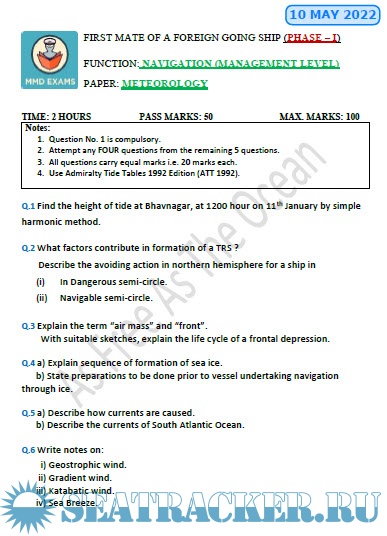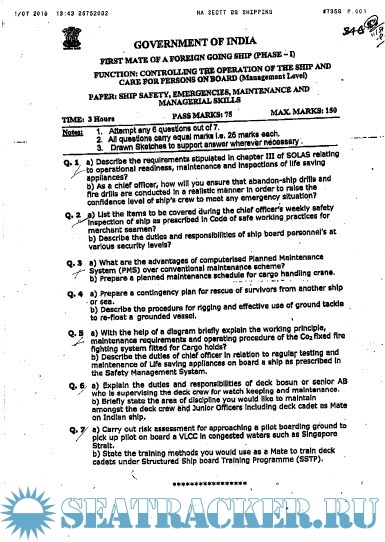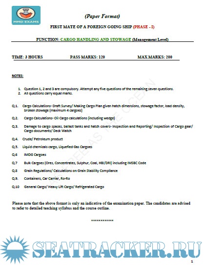 Question Paper Set for Phase II (Chief Mate F.G.) Mercantile Marine Department (MMD), India…