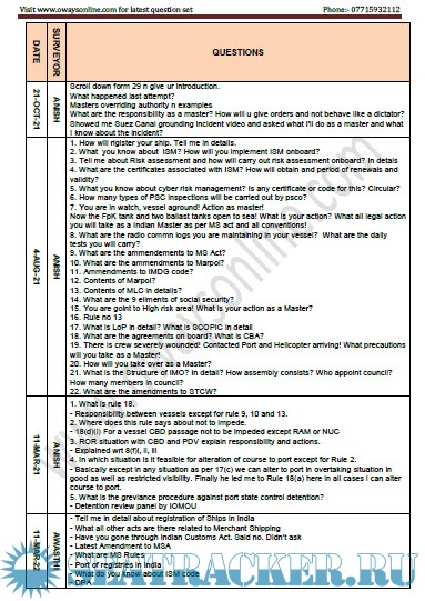 Orals Question Bank (March 2023) for ASM (Advanced Shipboard Management) / Master's Mercantile…