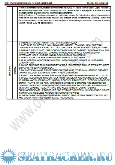 Orals Question Bank (February 2023) for ASM (Advanced Shipboard Management) / Master's…