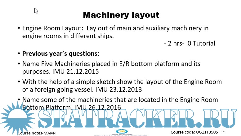 Description: Engine Room Layout: Lay out of main and auxiliary machinery in engine rooms in different ships.