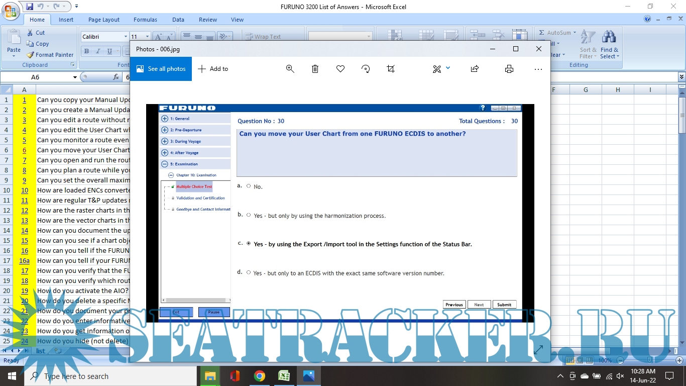 Description: By using the excel file, Clicking only the numbers from the left side corner of every questions and it will direct open you to the answers to jpeg.