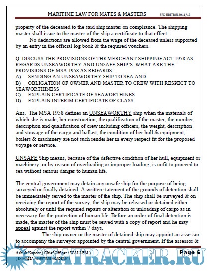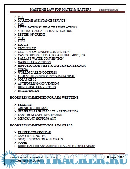 Notes on Maritime Law for Mates and Masters for Advanced Shipboard Management (ASM)