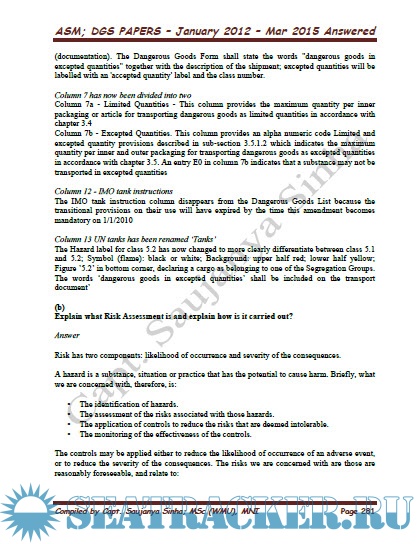 Solved Theory (2015-2012) - Past Question Papers Mercantile Marine Department (MMD), India Examinations for Advanced Ship Management (ASM)