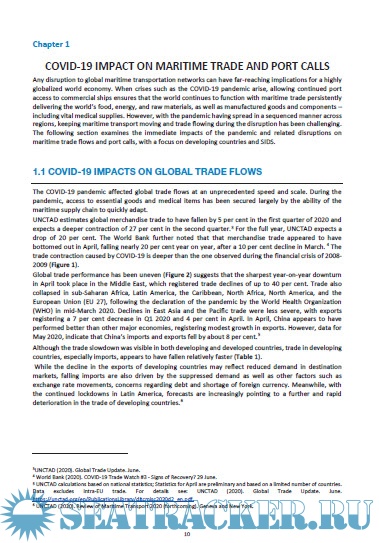 Against this background, chapters 1 and 2 of the present report describe the immediate impacts of the pandemic on maritime trade flows, ship calls, and liner shipping connectivity in the first half of 2020. Chapter 3 highlights relevant responses and adjustments made at the port level as well as by other stakeholders across the maritime supply chain to cope with the disruption and maintain business continuity, while at the same time, protecting workers and ensuring timely delivery of essential goods during the crisis.