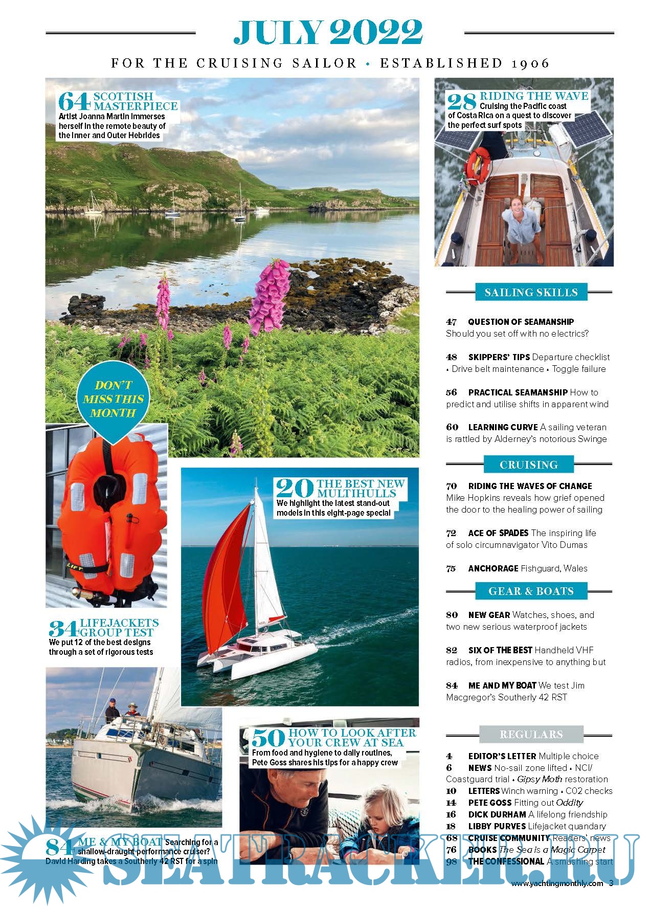 Inside the July 2022 issue of Yachting Monthly: 12 of the best coastal and offshore lifejackets TESTED, Pete Goss shares his secrets of a well-run boat, tips to predict and use apparent wind, the latest cruising catamarans and trimarans, the pioneering sailor few people have heard of..and more!