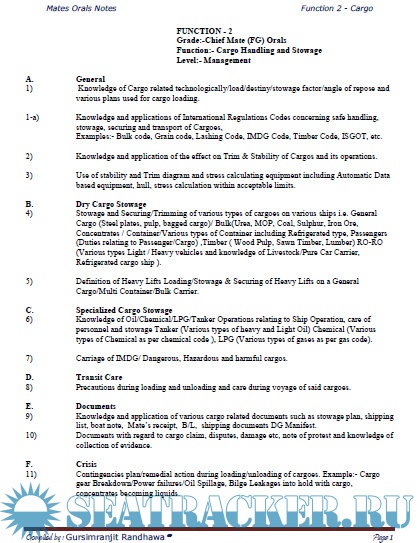 Mates Oral Exam Notes - Cargo Handling & Stowage [2016, PDF]