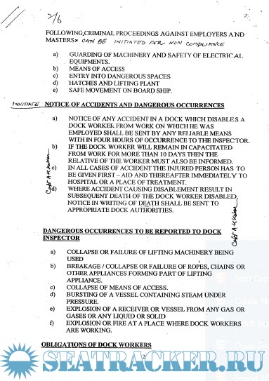 1. Life Saving and Fire Fighting Appliances2. Dock Labour Regulations
