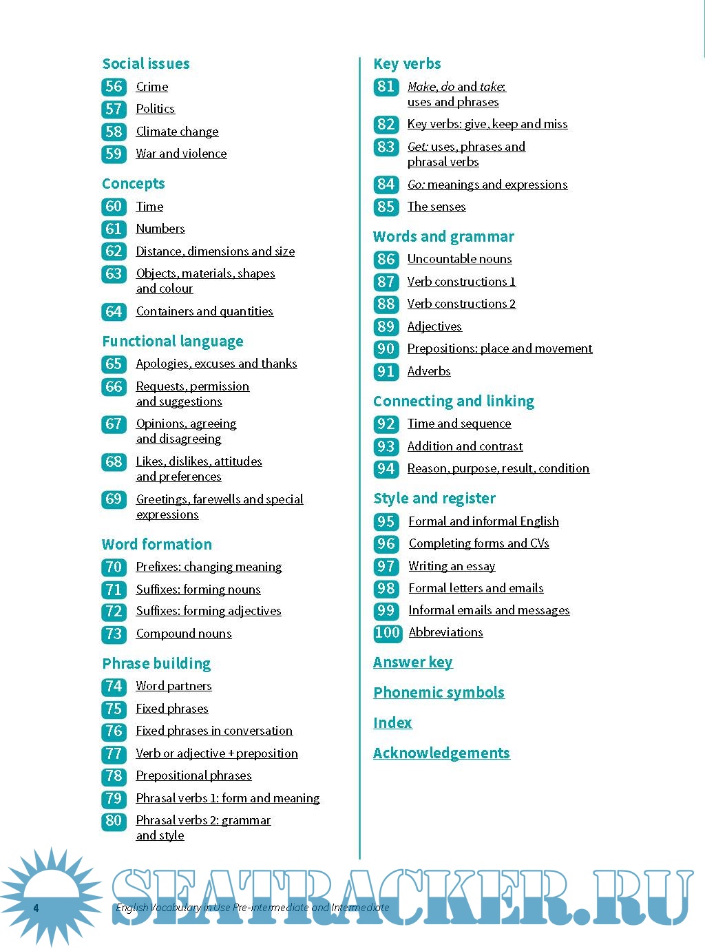 This book will help you learn more than 2,000 words and phrases, and you can use it without a teacher. There are 100 units in the book. You can study them in any order, but the first four units have information about vocabulary that will help you with your learning.