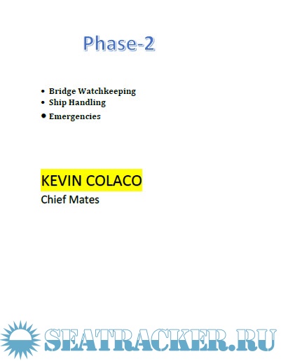 Year: 20xx Language: english Author: Kevin Colaco Format: PDF Quality: Scanned pages Pages count: 94 Description: Bridge Watchkeeping, Ship Handling and Emergencies Notes for Phase II (Chief Mate F.G.) Mercantile Marine Department (MMD), India Examinations.